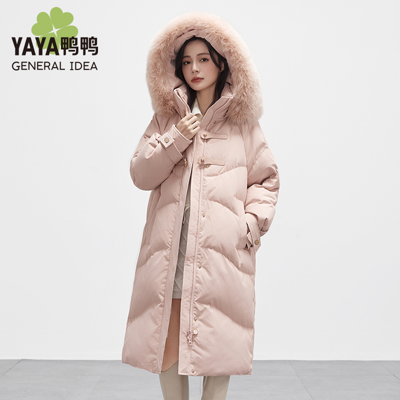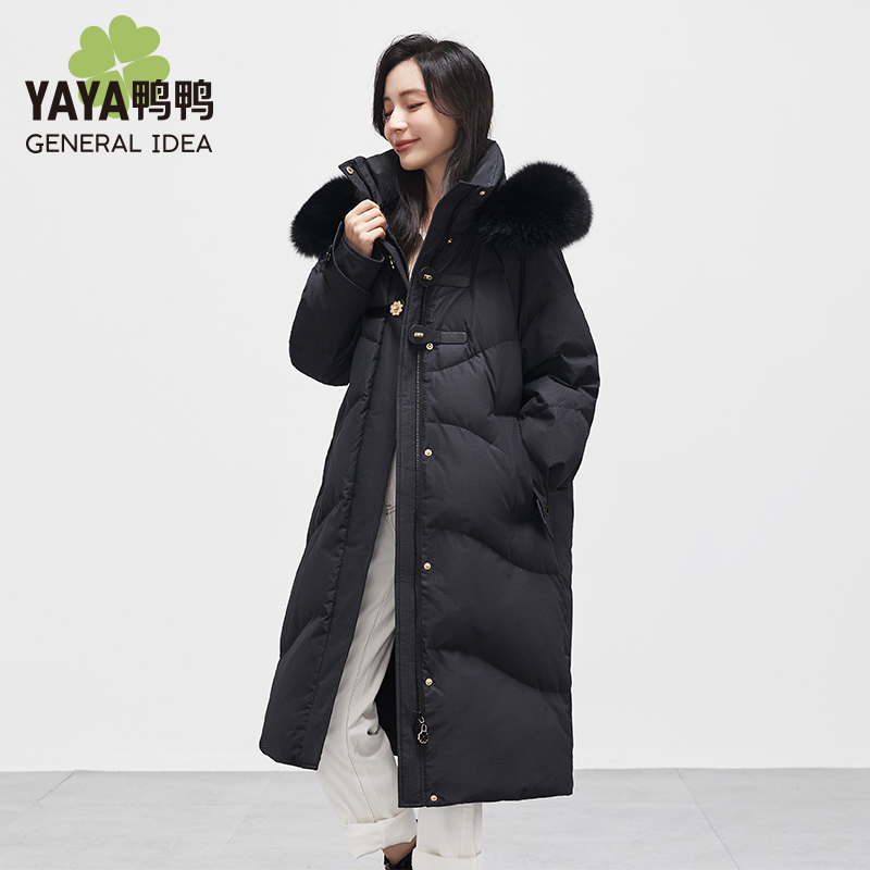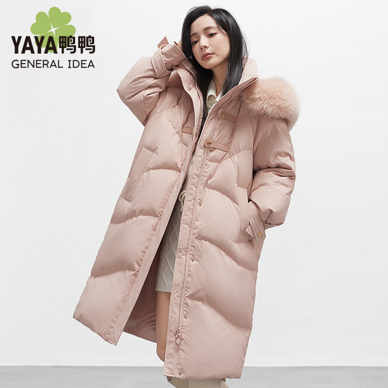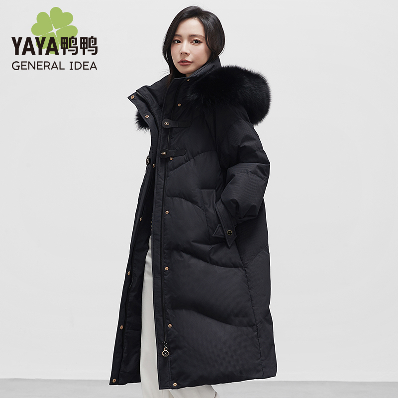 狐狸毛领连帽加厚外套 滑雪羽绒服女中长款 鸭鸭 设计师联名系列