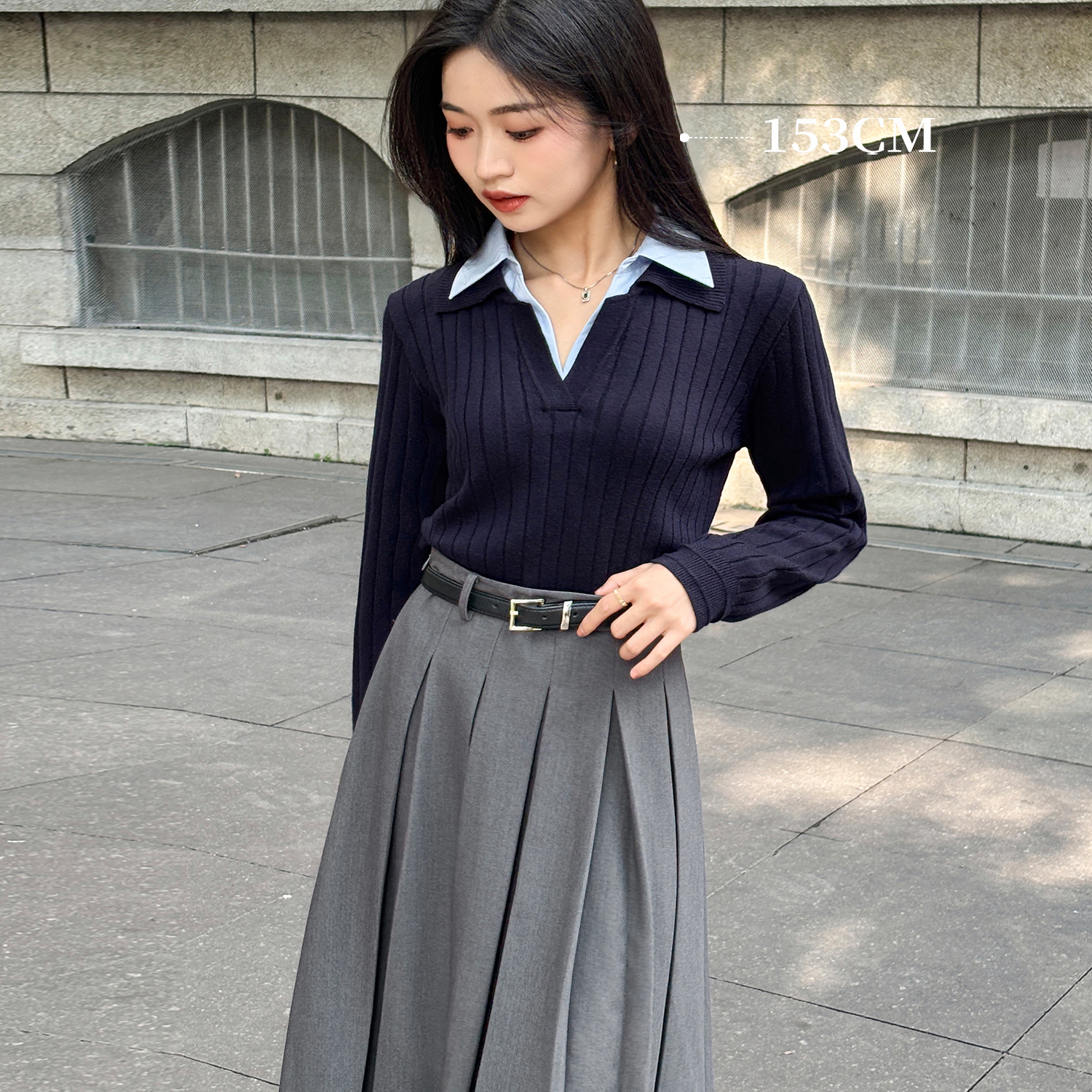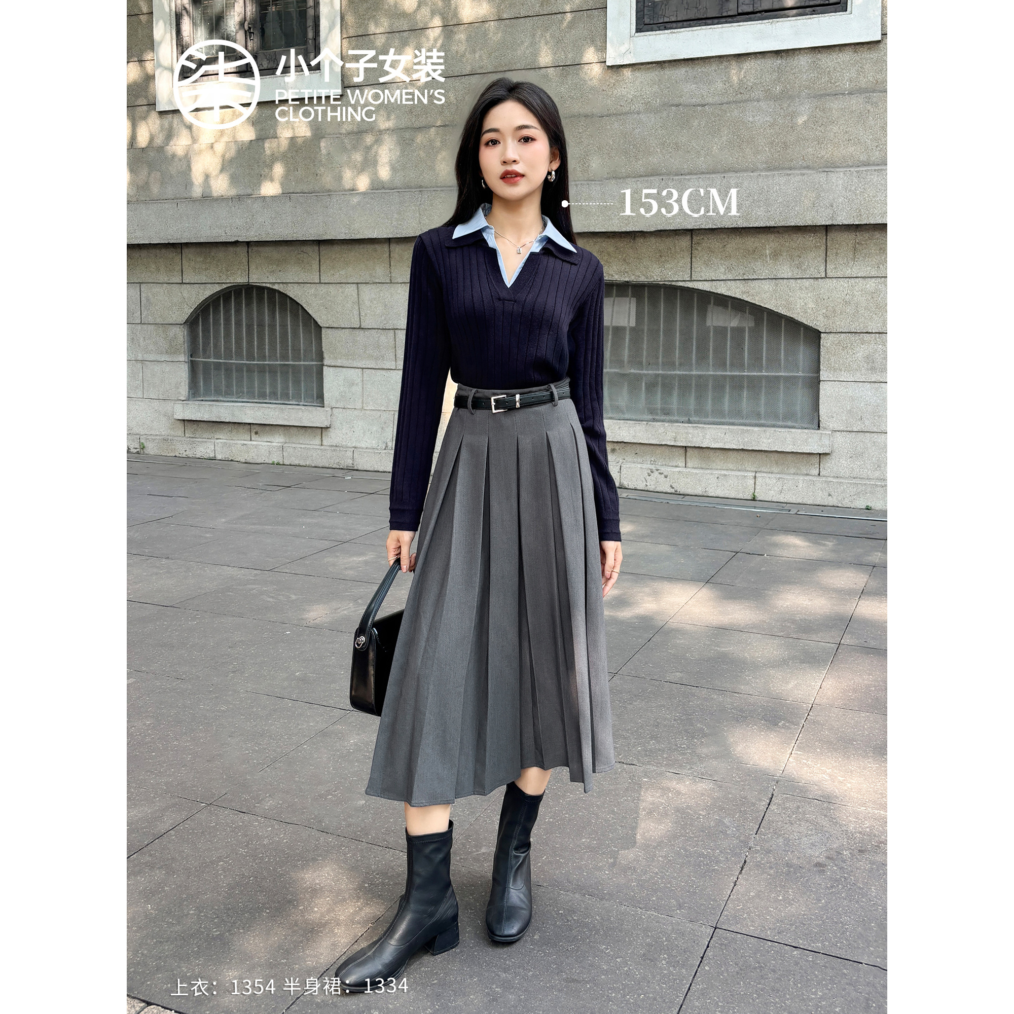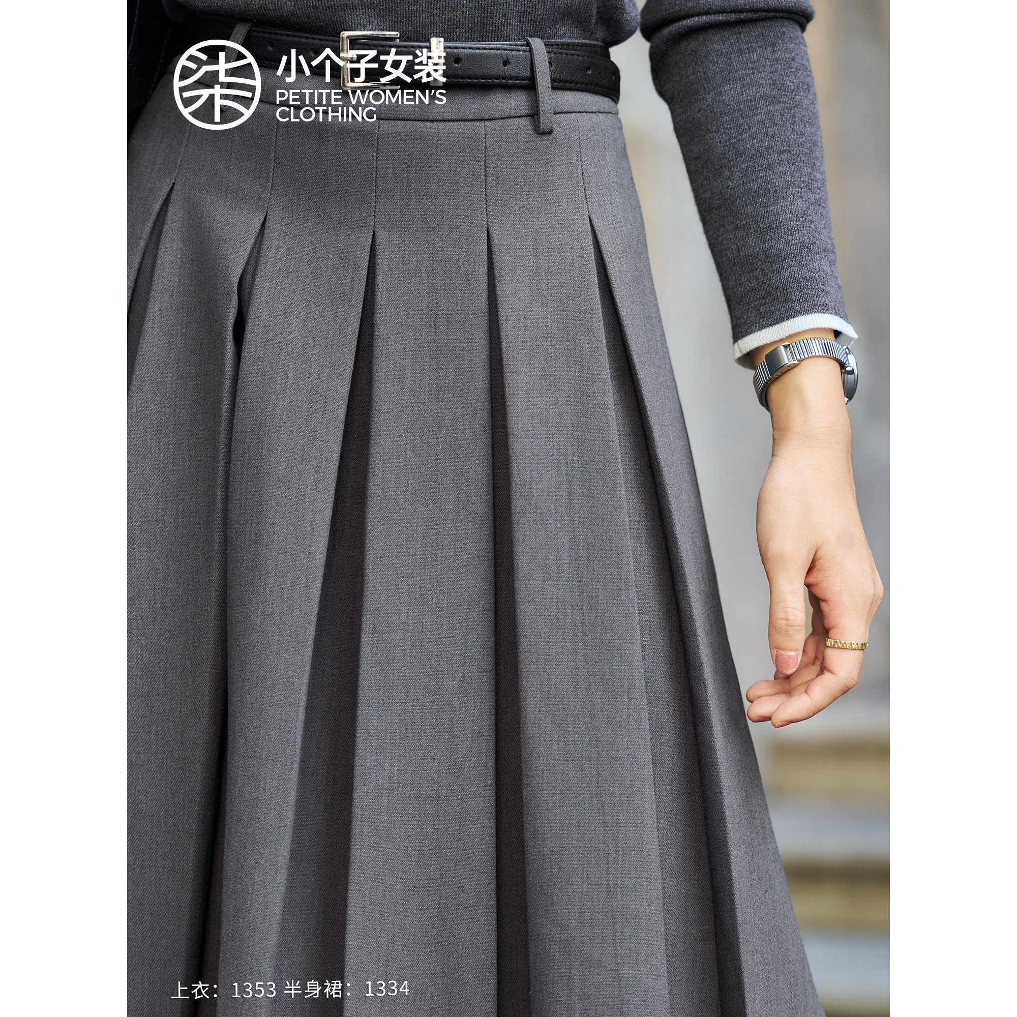 柒量一裁小个子深灰色百褶半身裙女新款 高腰a字裙显瘦1334