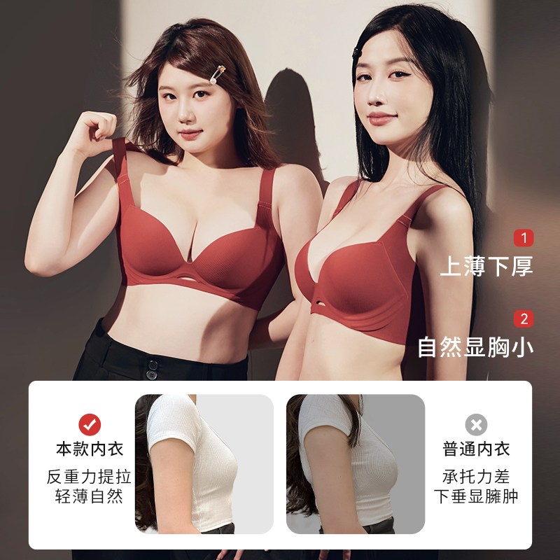 丝之莎大胸显小胸内衣薄款 无钢圈无痕全罩杯文胸罩 调整收副乳大码