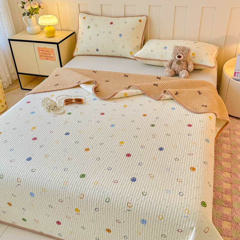 一面纯棉一面绒床盖单件双面可用榻榻米夹棉床单人三件套四季 通用