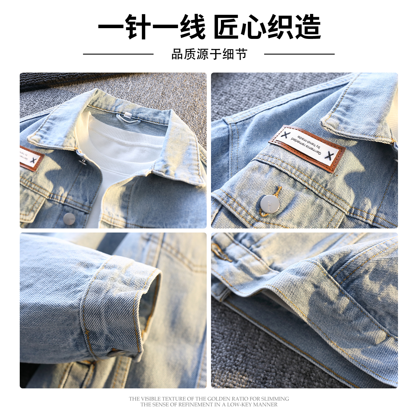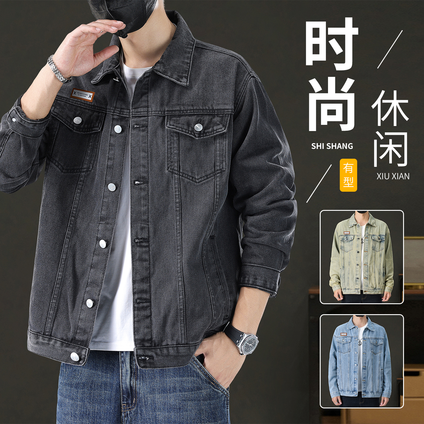 青年高级干美式 翻领牛仔夹克秋季 2025新款 春装 高级上衣 外套男时尚
