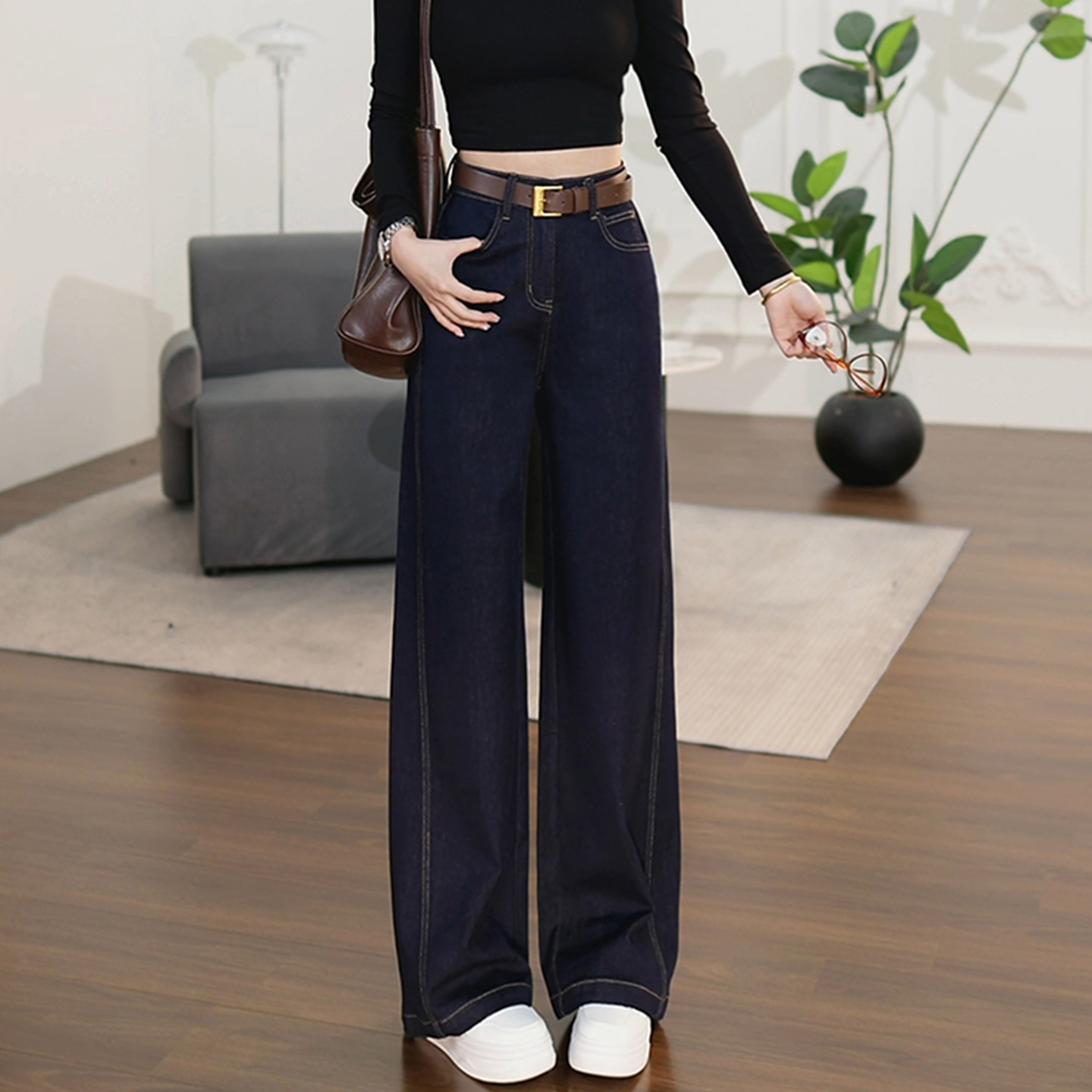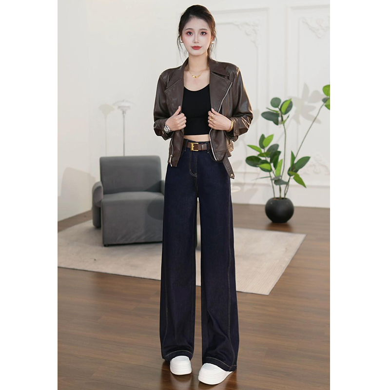 型好看阔腿牛仔裤 子女士直筒裤 女2025新款 高腰宽松弛感裤 春秋季 版