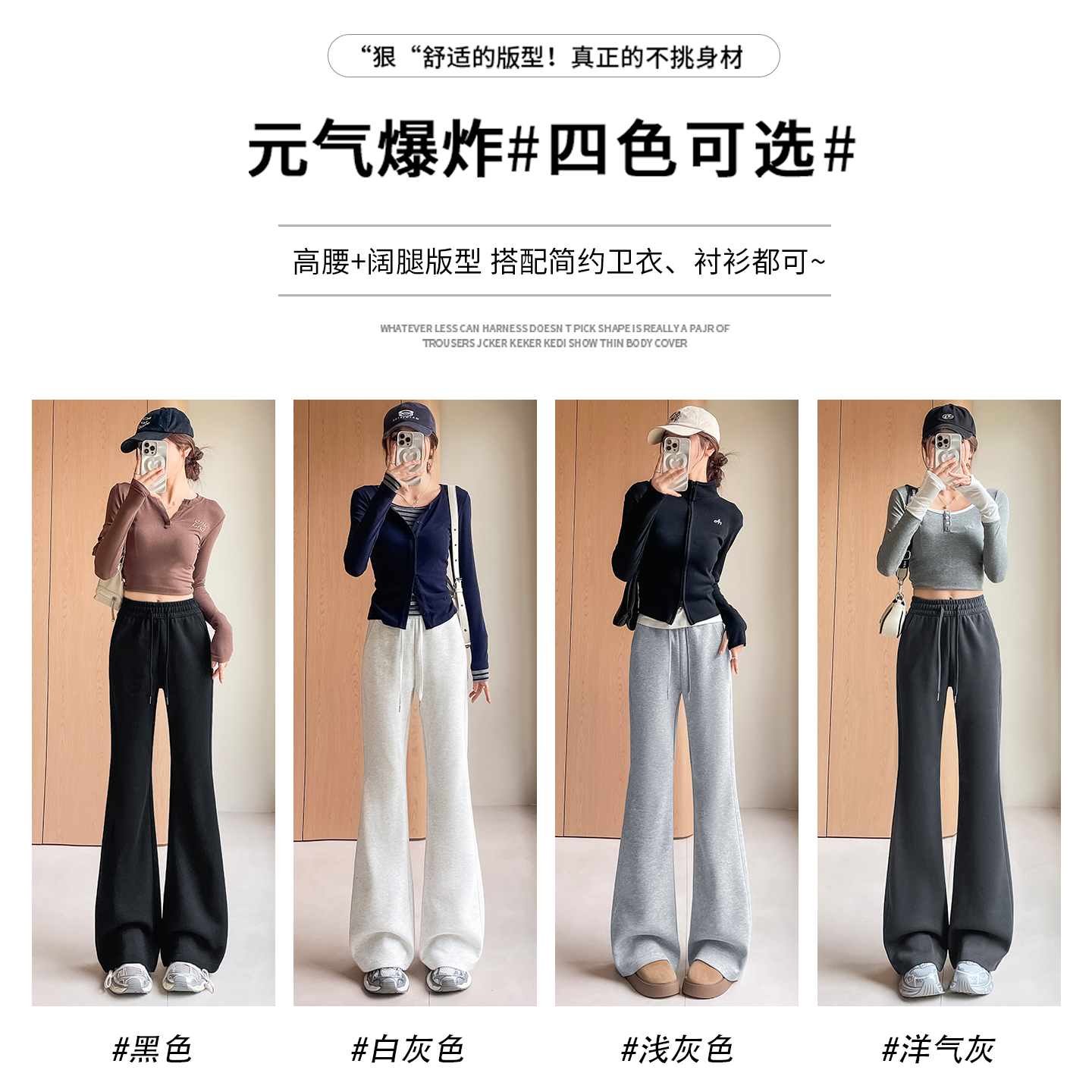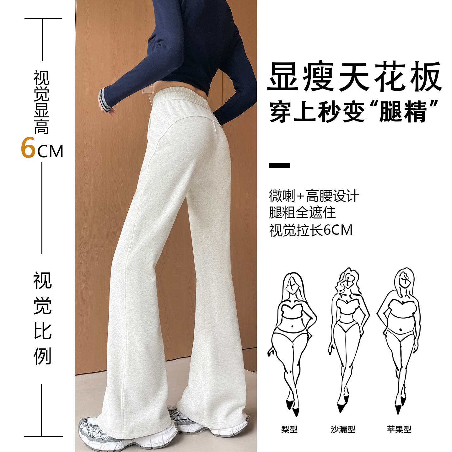 马蹄裤 修身 休闲喇叭裤 运动裤 黑色高腰微喇裤 加绒显瘦长裤 女早秋季