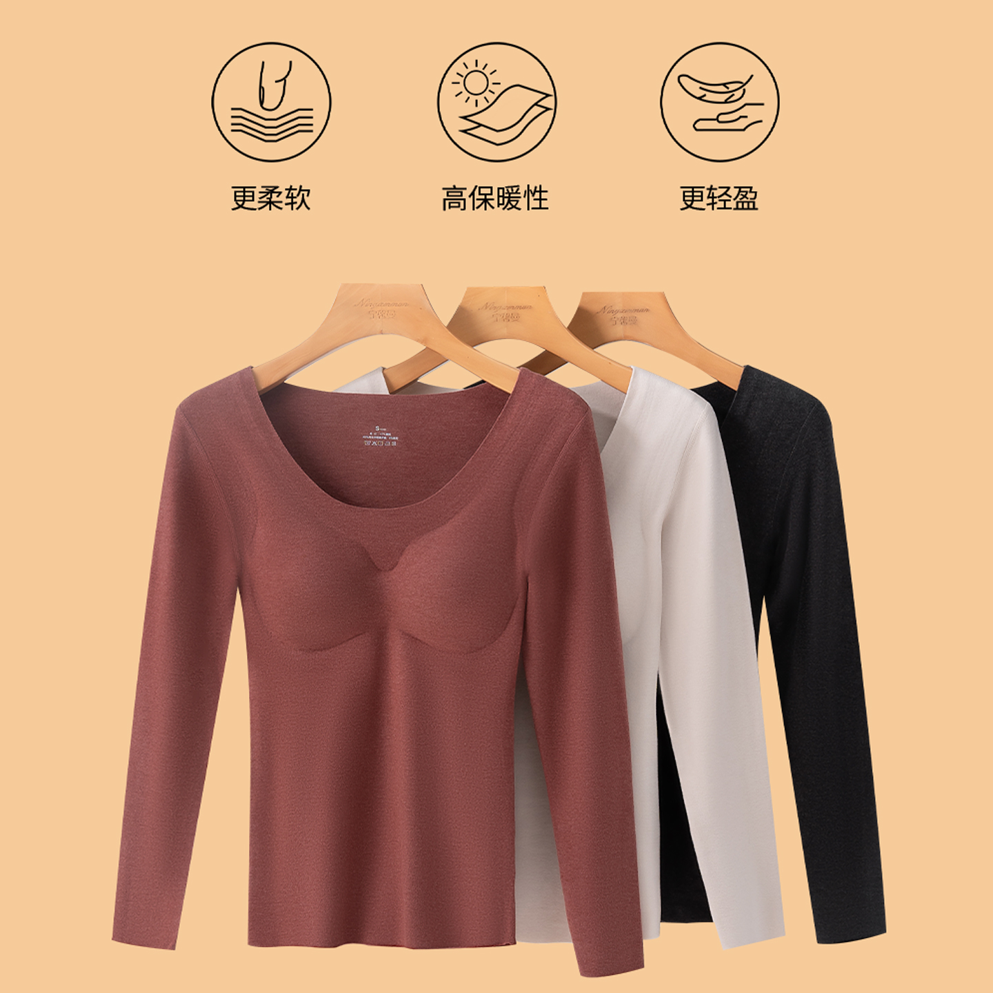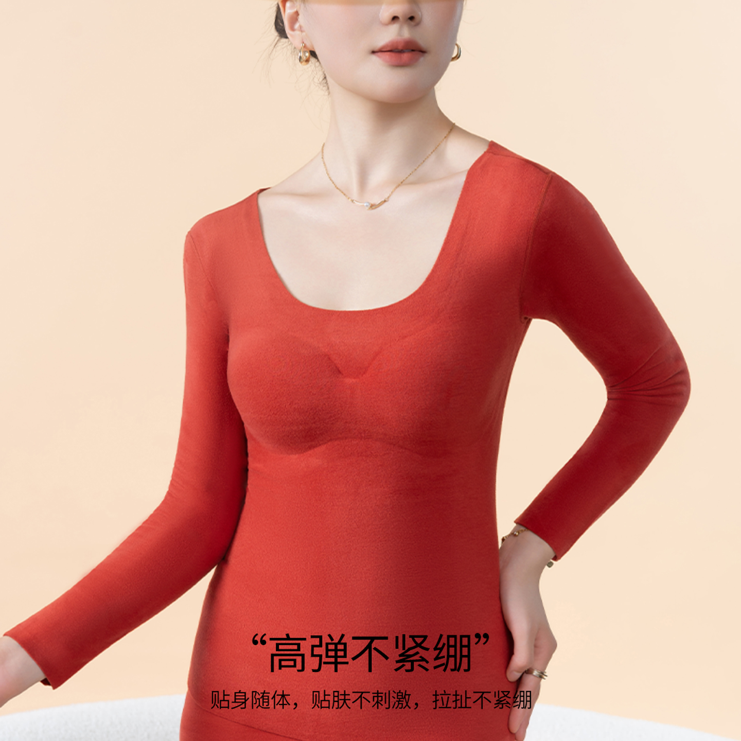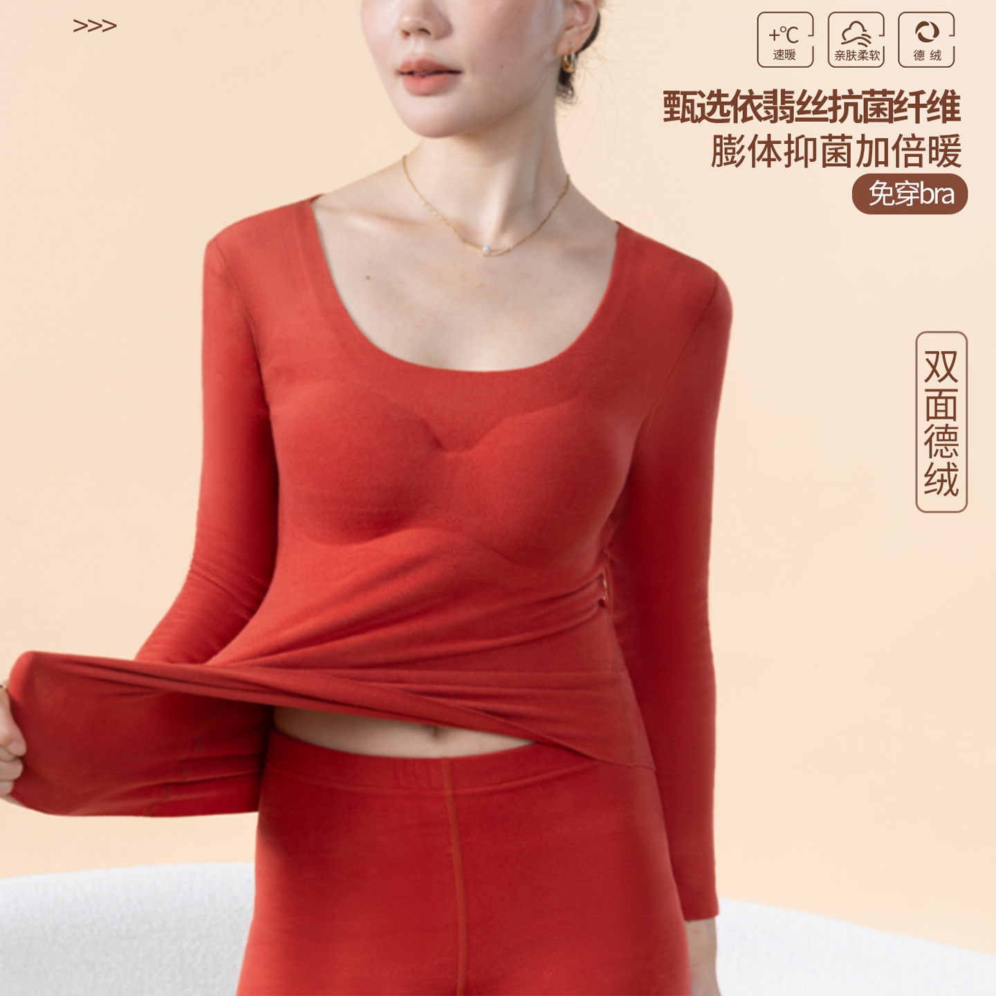 2025新款 女士自带胸垫德绒发热加绒加厚保暖内衣免穿文胸上衣冬季