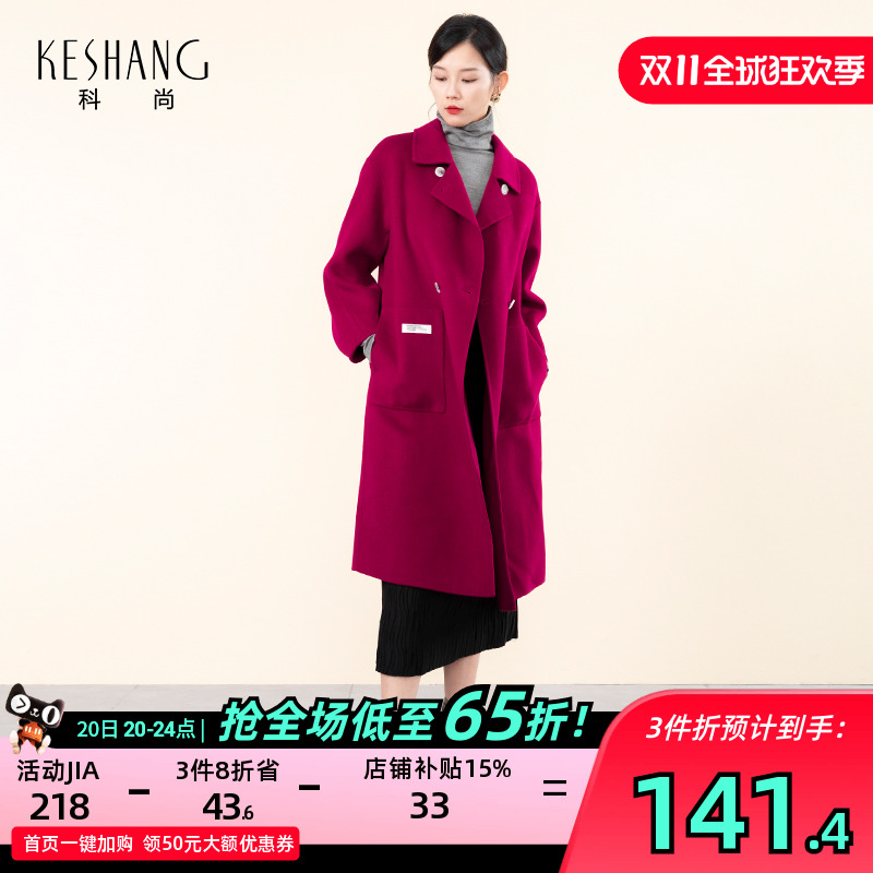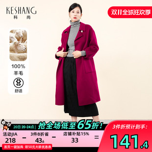显瘦 过膝外套中长款 科尚100%羊毛双面呢大衣女2025冬新款 宽松韩版