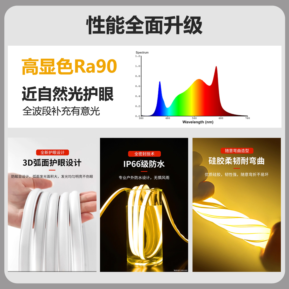 超亮led灯带220v自粘线形灯家用客厅吊顶户外防水工程COB软灯条