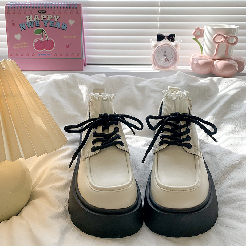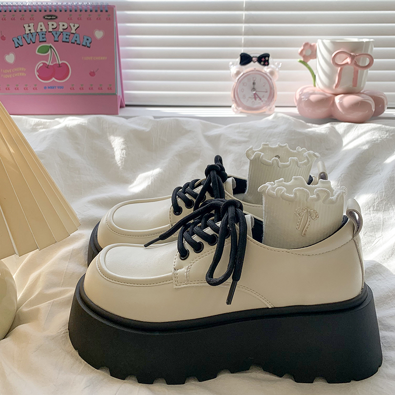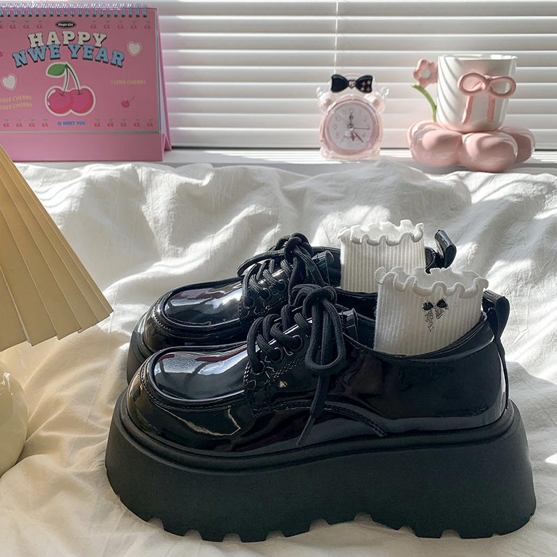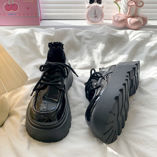 英伦风复古jk乐福单鞋 黑色系带小皮鞋 增高厚底女鞋 新款 女2025秋季