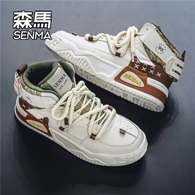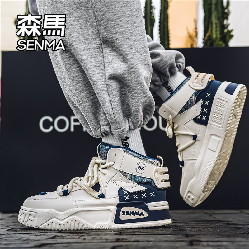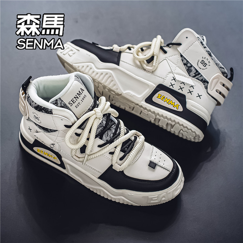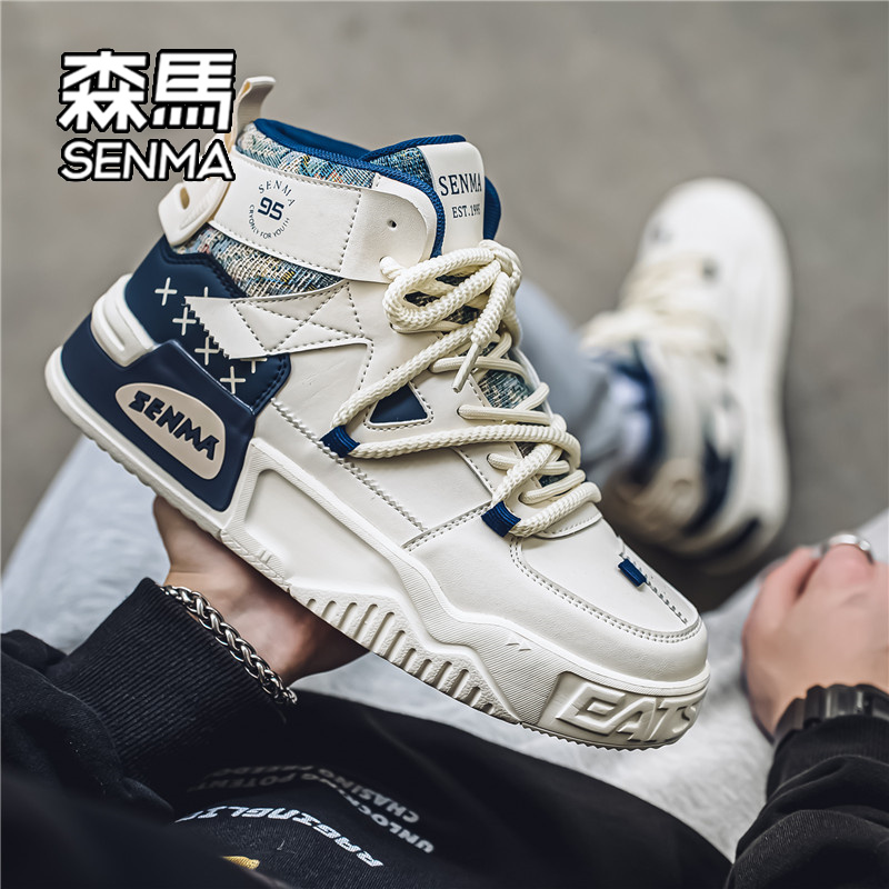 运动鞋 高帮休闲鞋 秋冬新款 子学生厚底男鞋 皮面鞋 征服鸿星尔克板鞋
