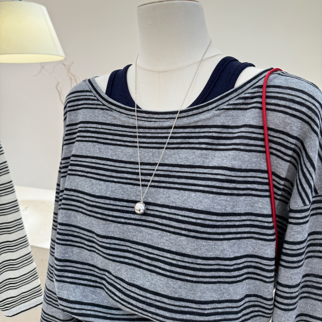 2025新款 复古条纹宽松修身 t恤女秋季 长袖 两件套上衣 显瘦背心罩衫
