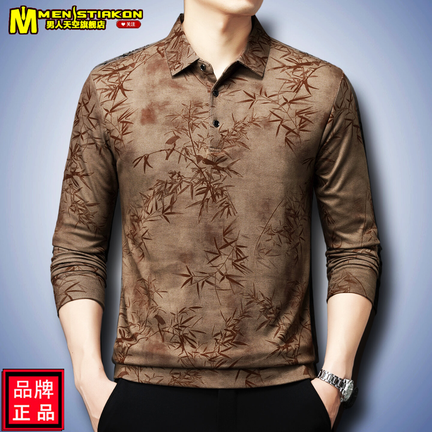 中老年爸爸带领中国风体恤新款 秋季 花t恤印花POLO衫 长袖 2025 男士