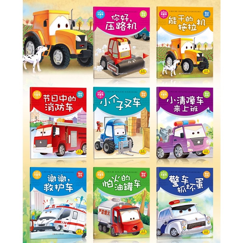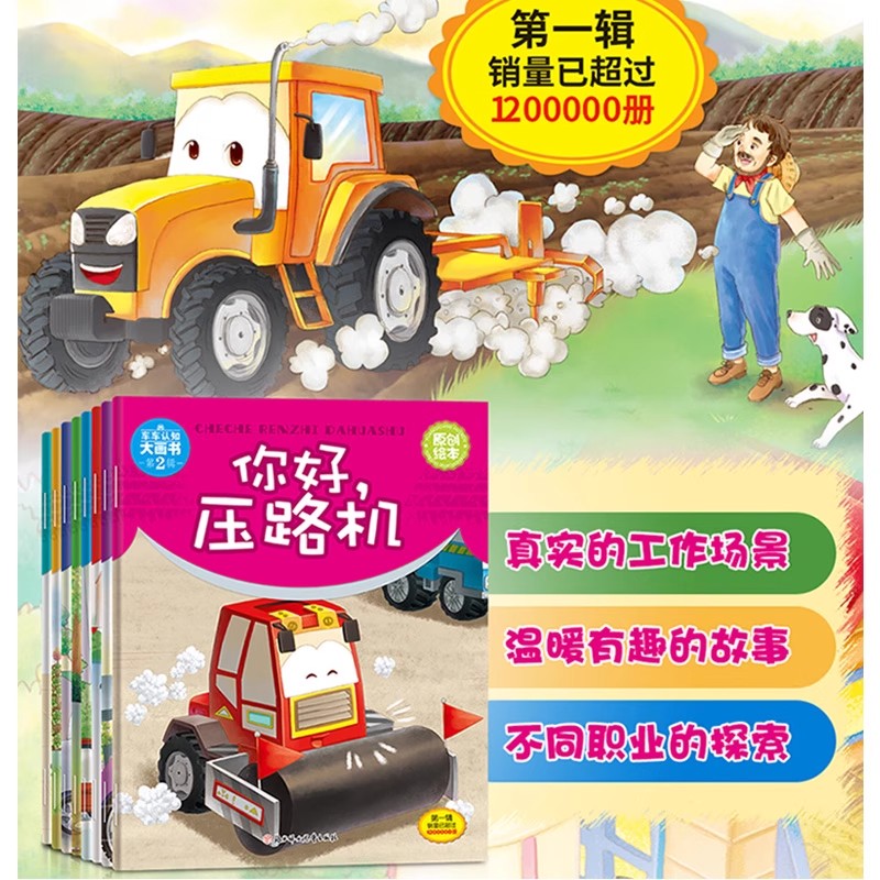 压路机 叉车 救护车 车车认知大画书第二辑全8册 消防车 警车 6岁幼儿园宝宝认识汽车启蒙绘本 儿童汽车早教启蒙科普故事绘本