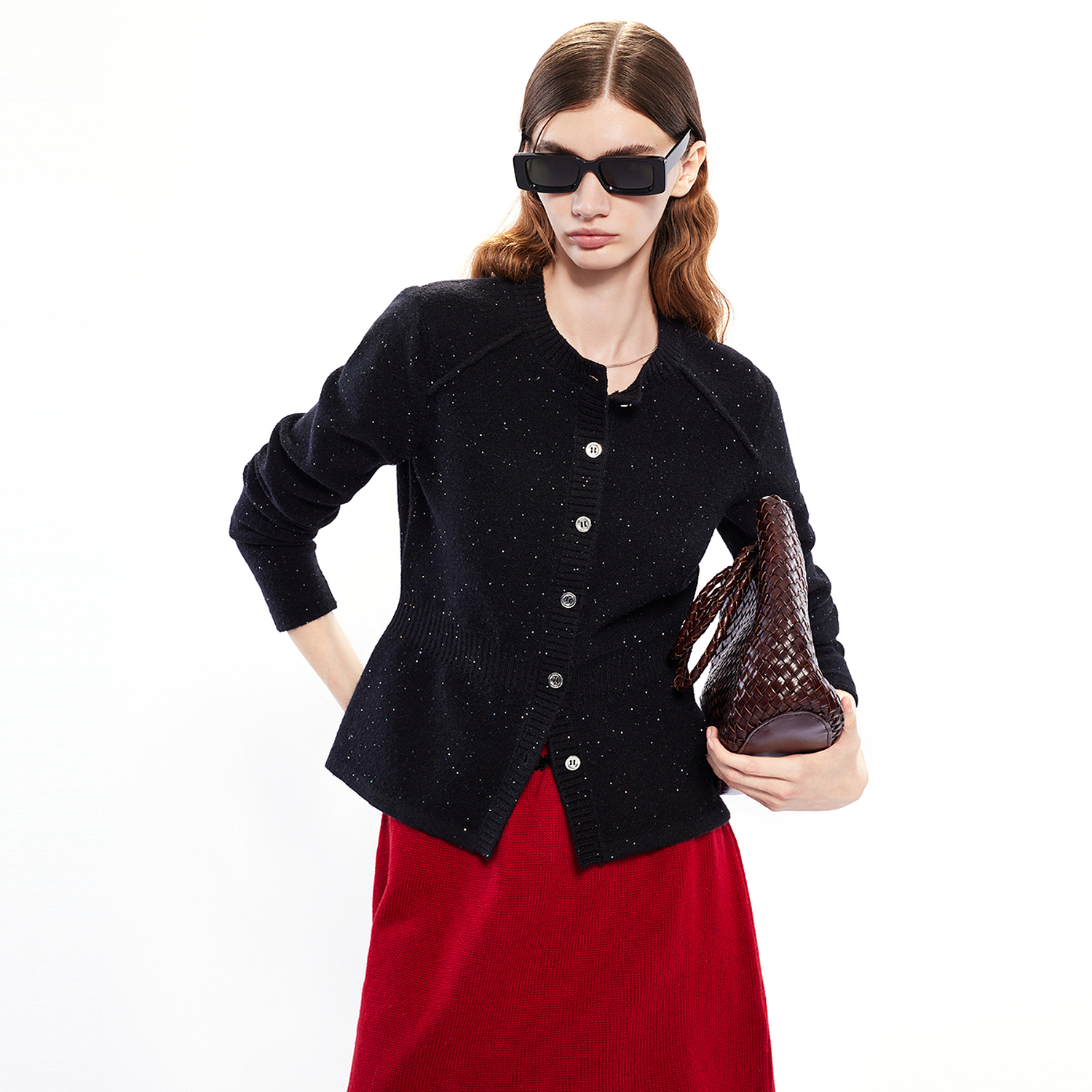 亮片气质通勤针织衫 上衣圆领收腰修身 女 新款 DKNY唐可娜儿2025秋季