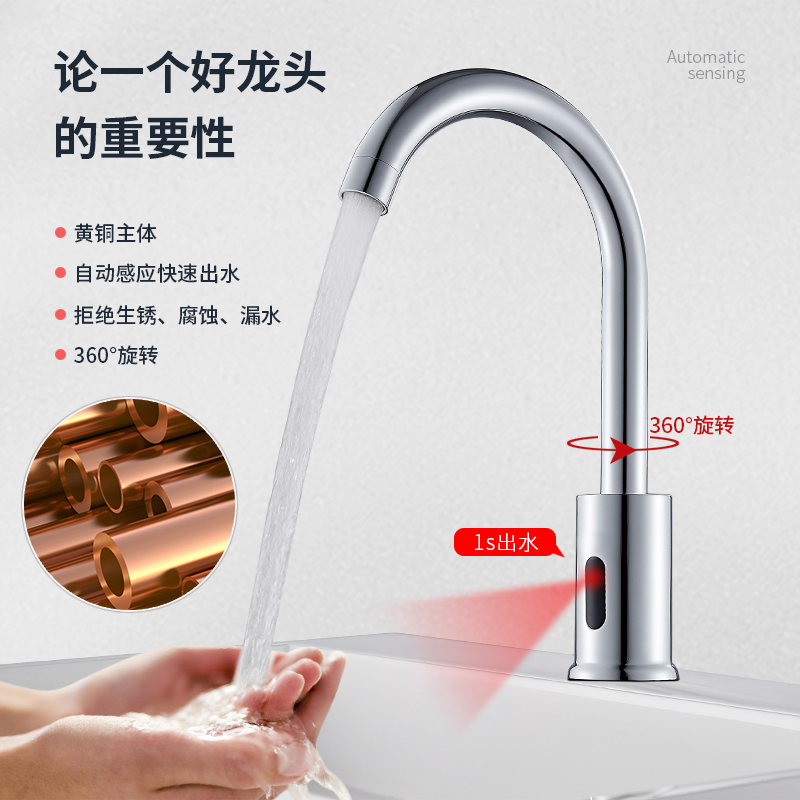 感应水龙头全自动红外线卫生间洗手盆感应式 龙头家用冷热感应龙头