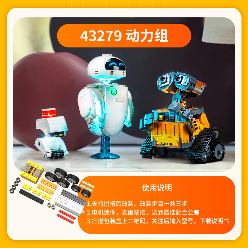 适用于乐高遥控马达动力组迪士尼43279瓦力和伊娃机器人积木灯光