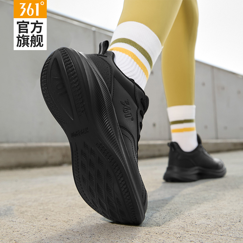 运动鞋 女士轻便黑色休闲鞋 2025秋季 皮面防水跑步鞋 子 新款 361女鞋