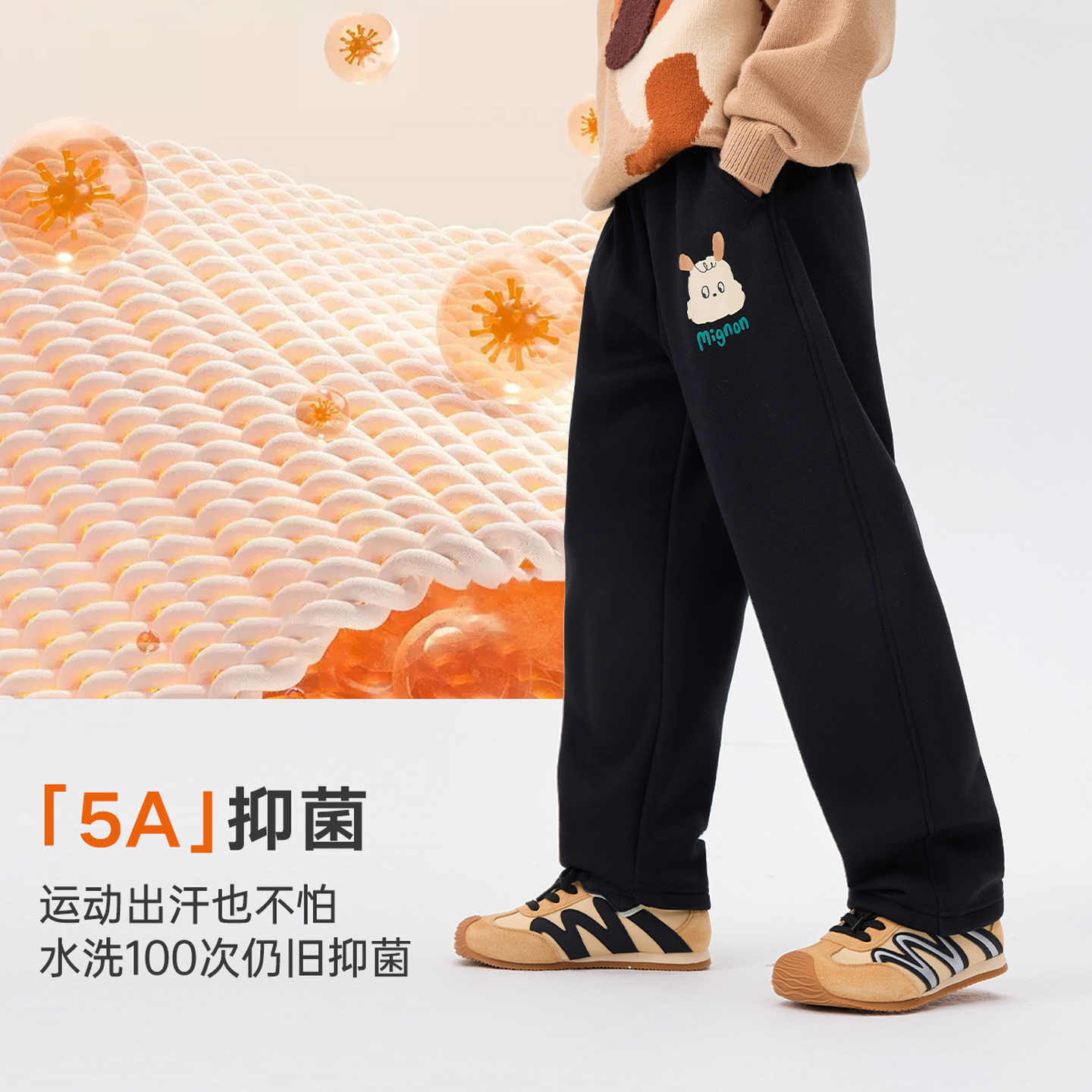 胖mm慵懒风松弛感加绒运动休闲裤 女秋季 子 黑色软糯奶芙阔腿裤 大码