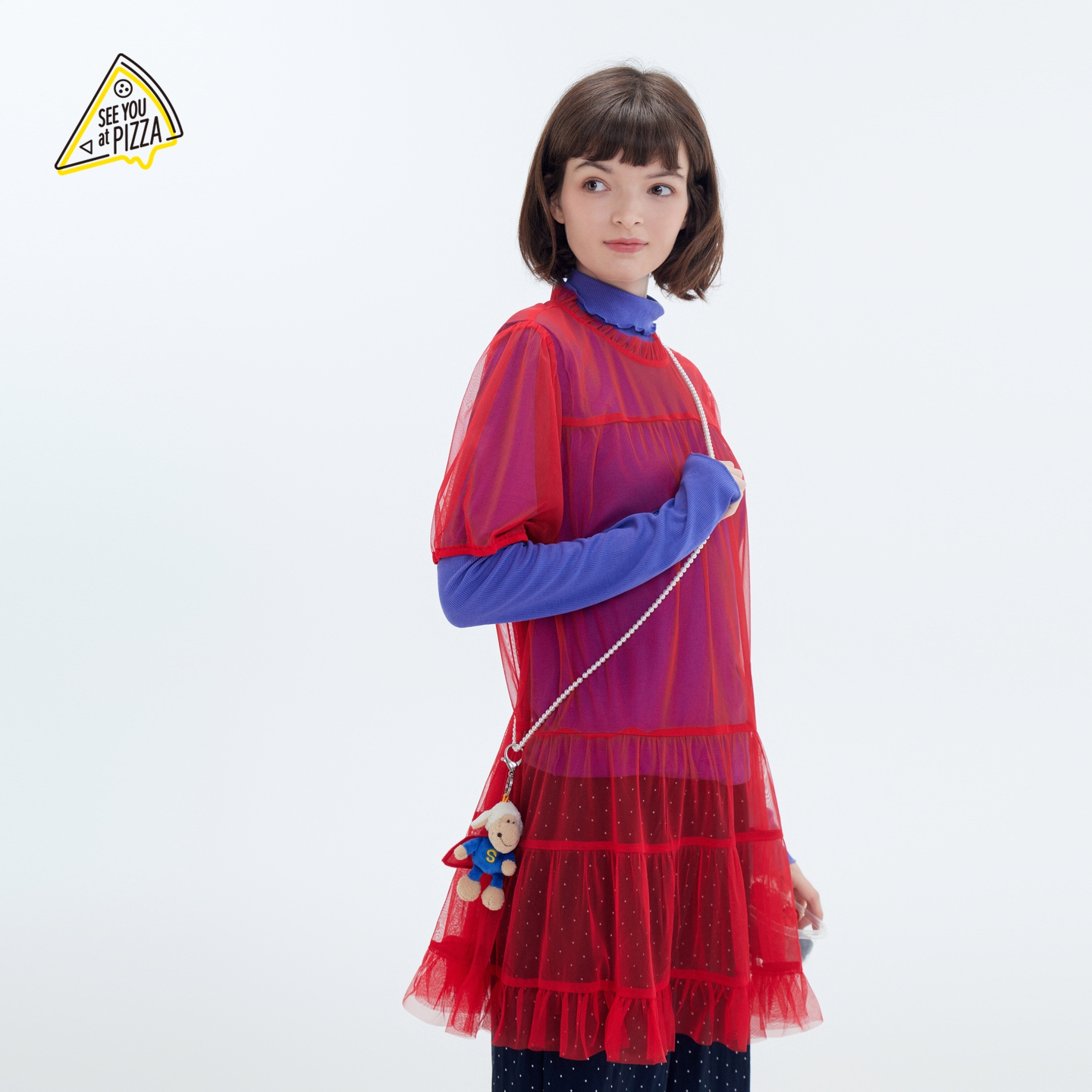 新款 灯芯绒打底连衣裙女冬季 冬装 立领拼接长裙内搭红裙子 6折