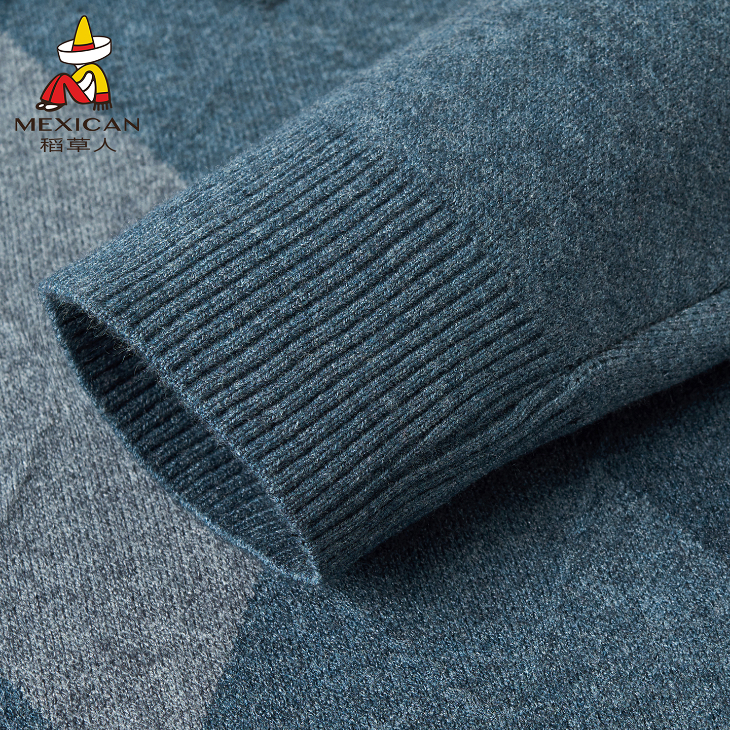 鸡心领男士 稻草人菱形格V领羊毛衫 休闲打底针织衫 新款 毛衣J 男冬季