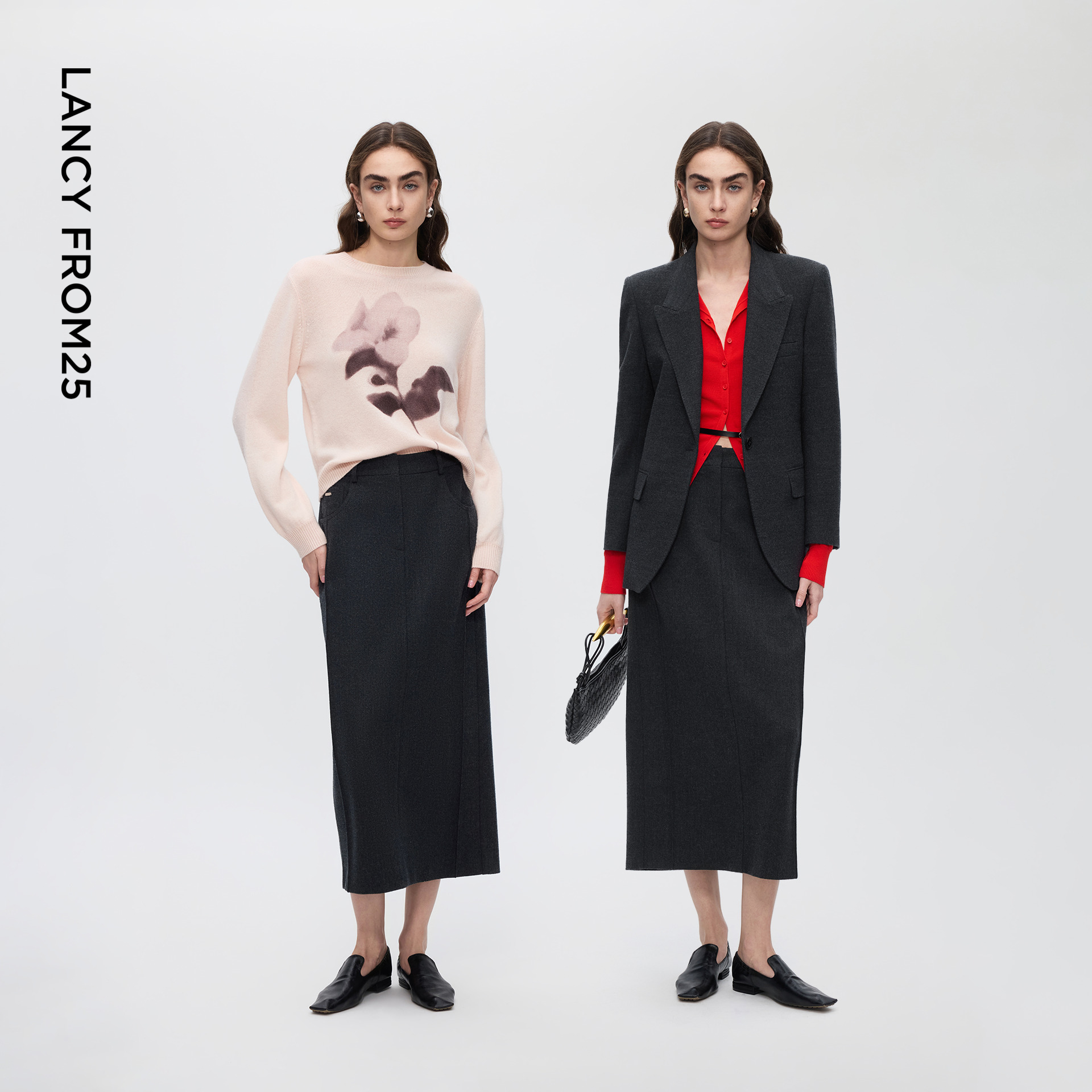 休闲直筒中长西装 CHICJOJO灰色半身裙女25秋新款 裙 缪斯半裙