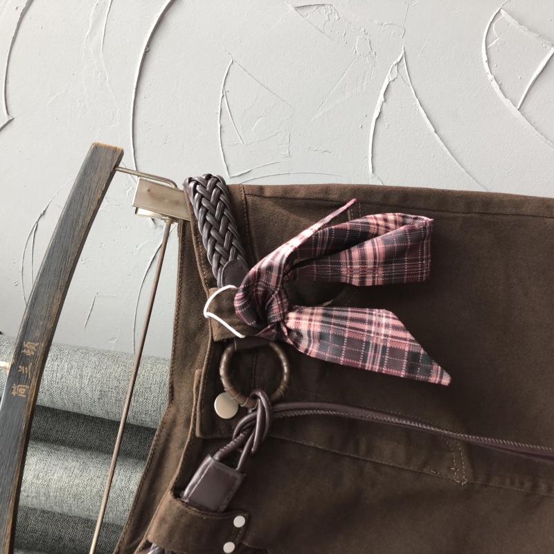 西町村屋格纹压褶不规则中裙女2025秋季 复古半身裙XAAB10392 新款