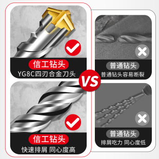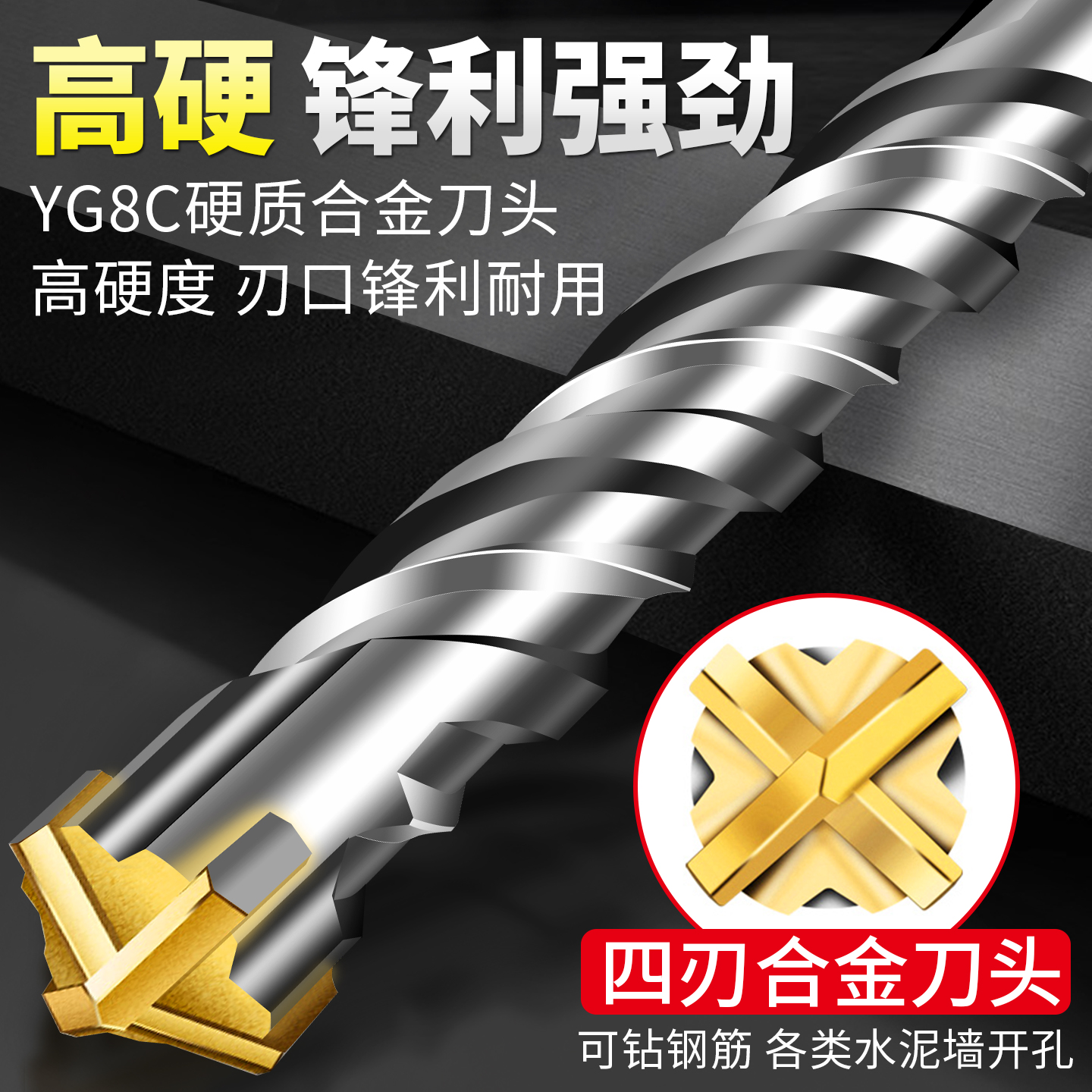 冲击钻头电锤钻头圆柄方柄混凝土打孔专用加长穿过墙十字钨钢钻头