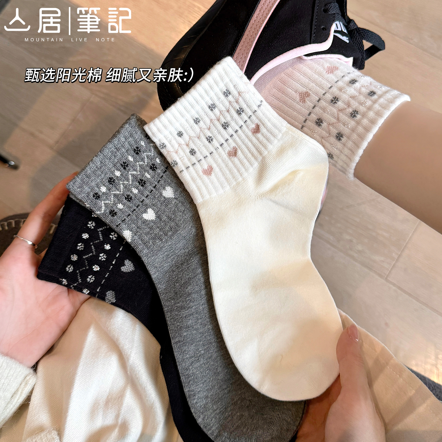 纯棉防臭女款 袜子女秋季 超火网红款 爆款 无骨袜中筒袜 短袜2025新款