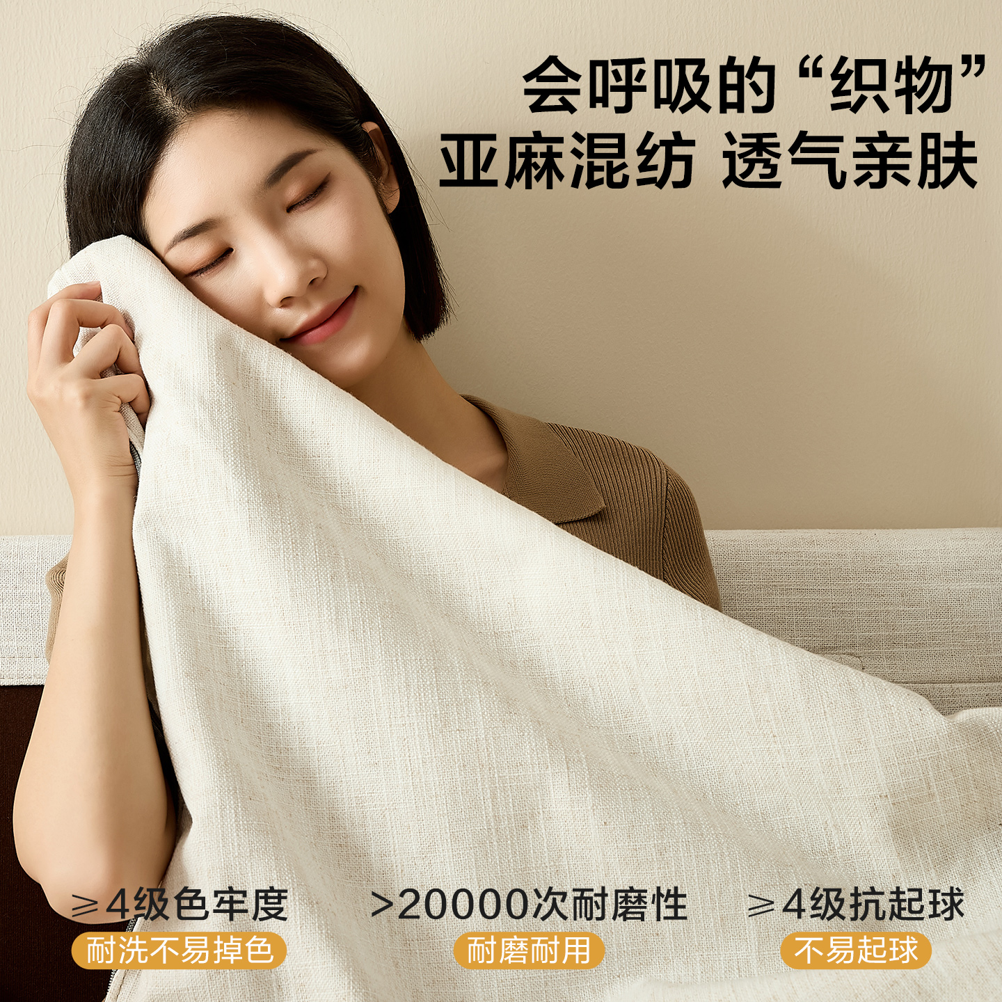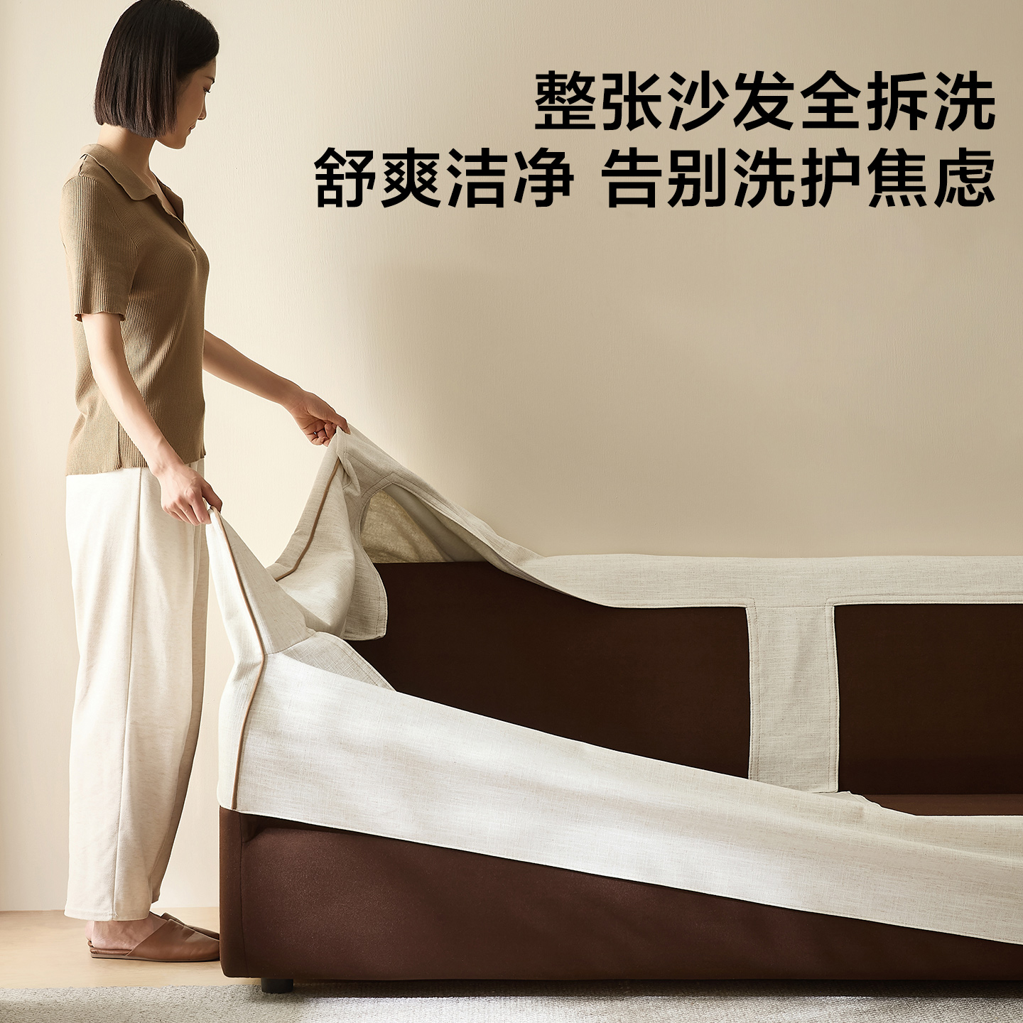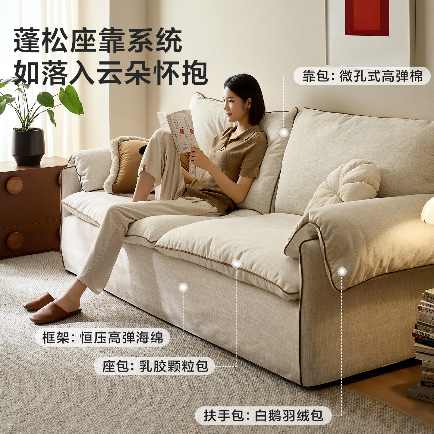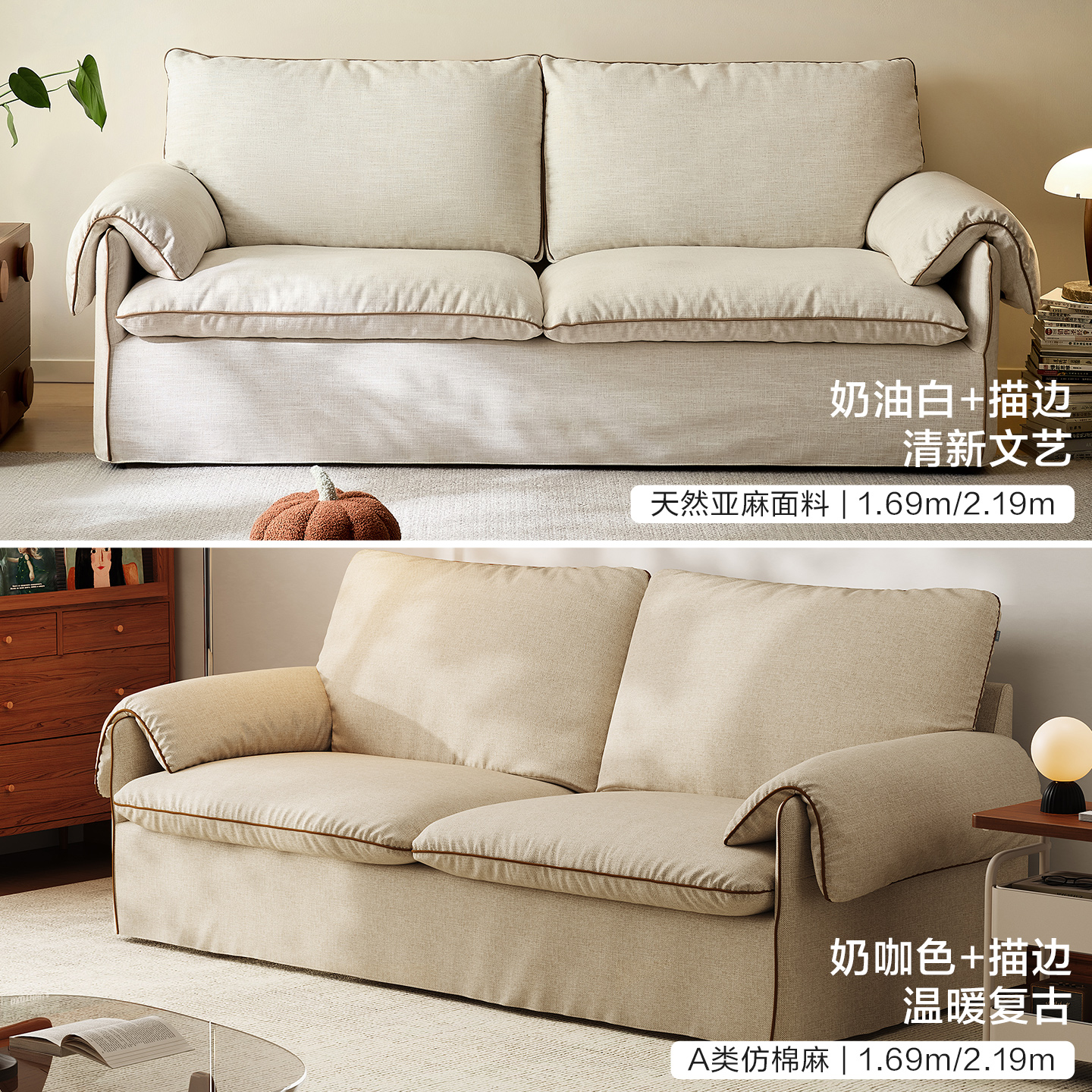 全友家居奶油风亚麻布艺沙发可拆洗小户型客厅复古风落地直排沙发