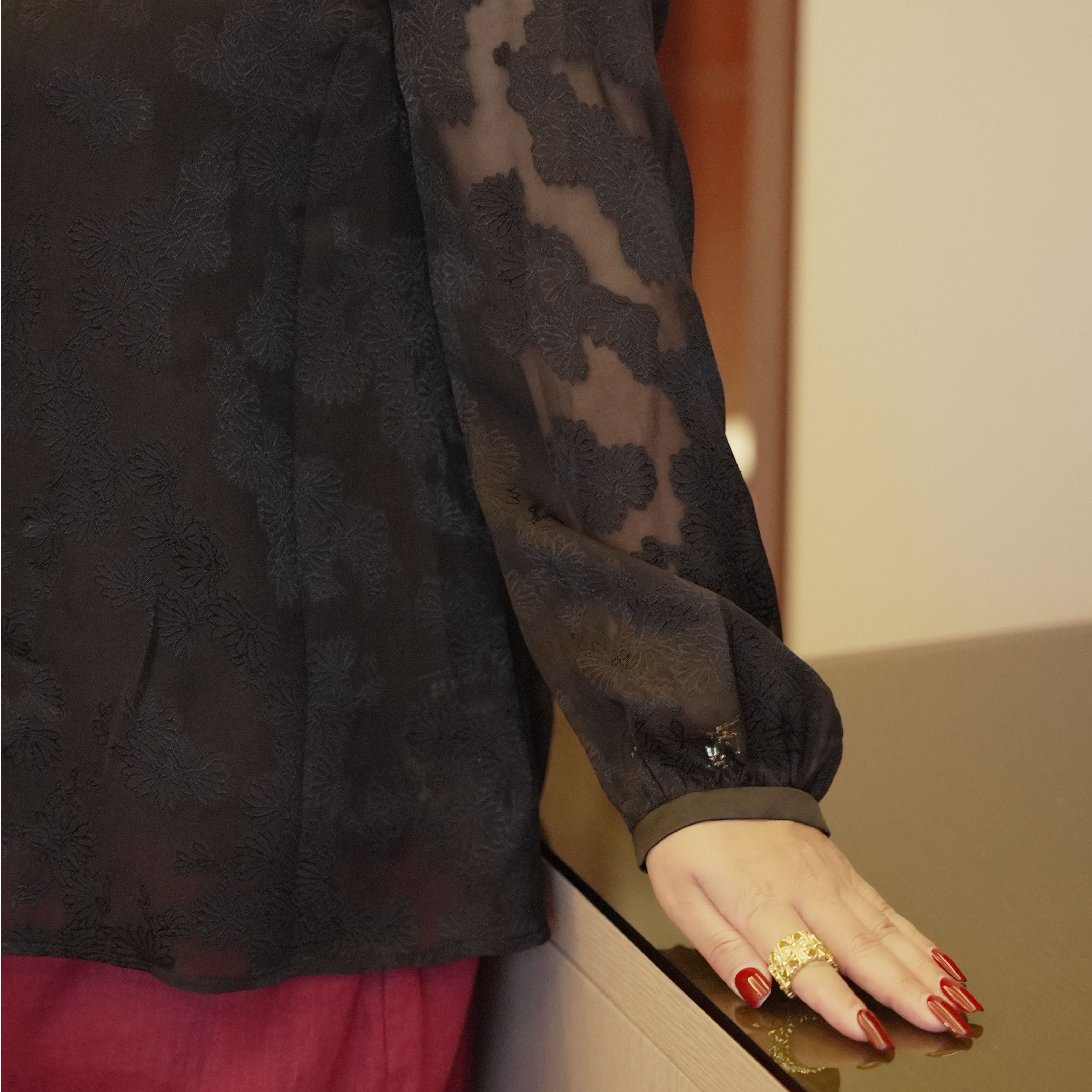 时尚 2025春秋新款 简约桑蚕丝提花宽松上衣SY155 女装 向红同学大码