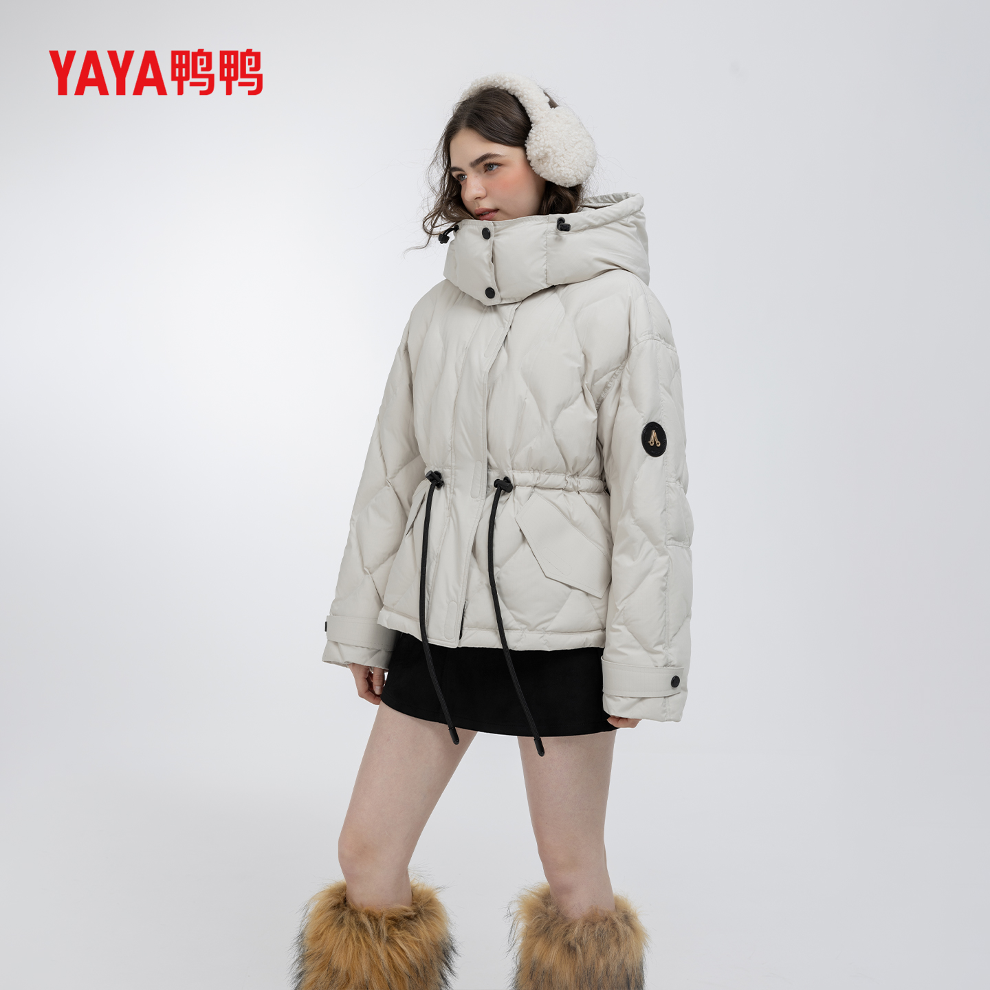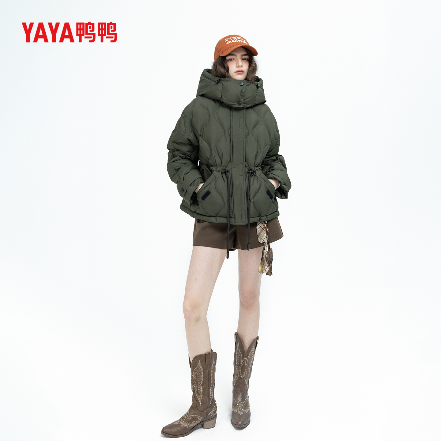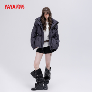 保暖羽绒服女 冬季 YAYA鸭鸭2025新款 运动风加厚外套连帽宽松中长款