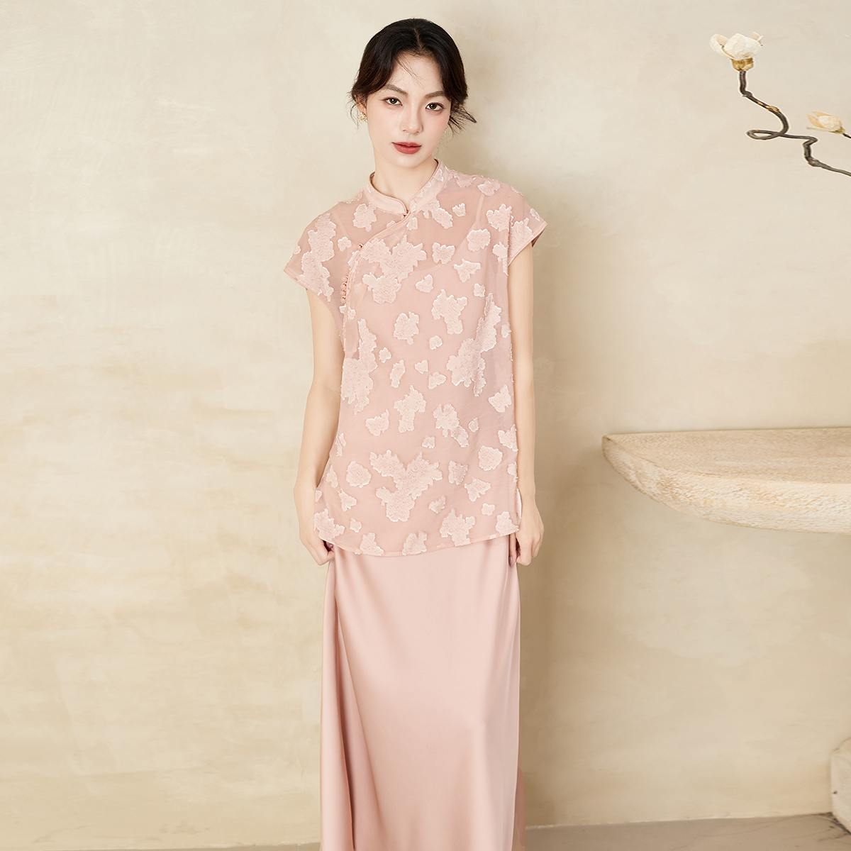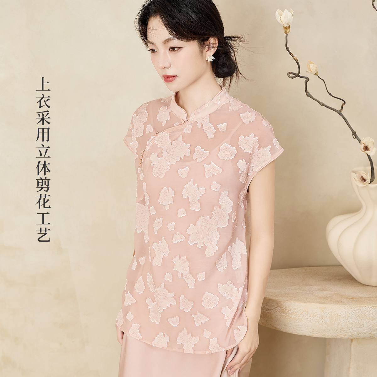 套装 QS秸熙2025秋夏新品 斜门襟上衣连衣裙时尚 改良衬衫 复古新中式