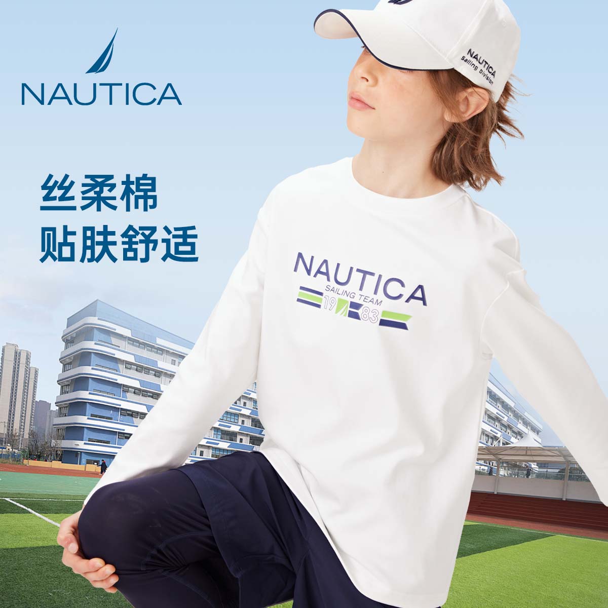 夏装 T恤2025新款 男女童白色超好看上衣服 诺帝卡儿童长袖 NAUTICA