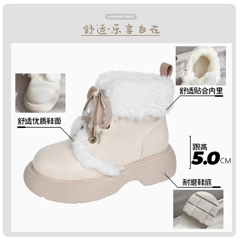 马丁靴子皮毛一体 厚底加绒加厚保暖大棉鞋 雪地靴女2025新款 秋冬季