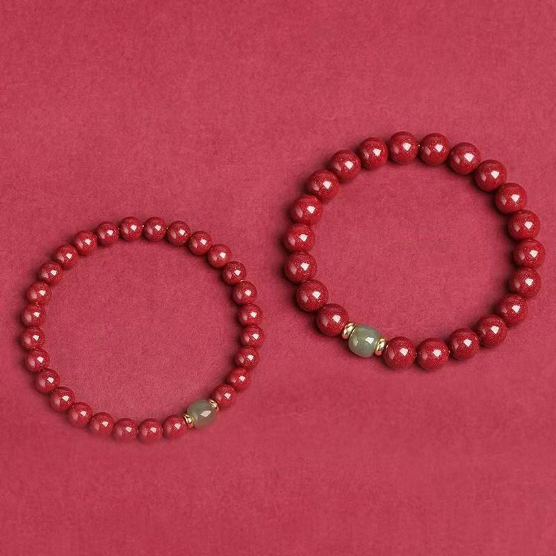 朱砂手串女男帝王砂东海水晶玛瑙翡翠玉石散珠子红手镯紫金砂手链