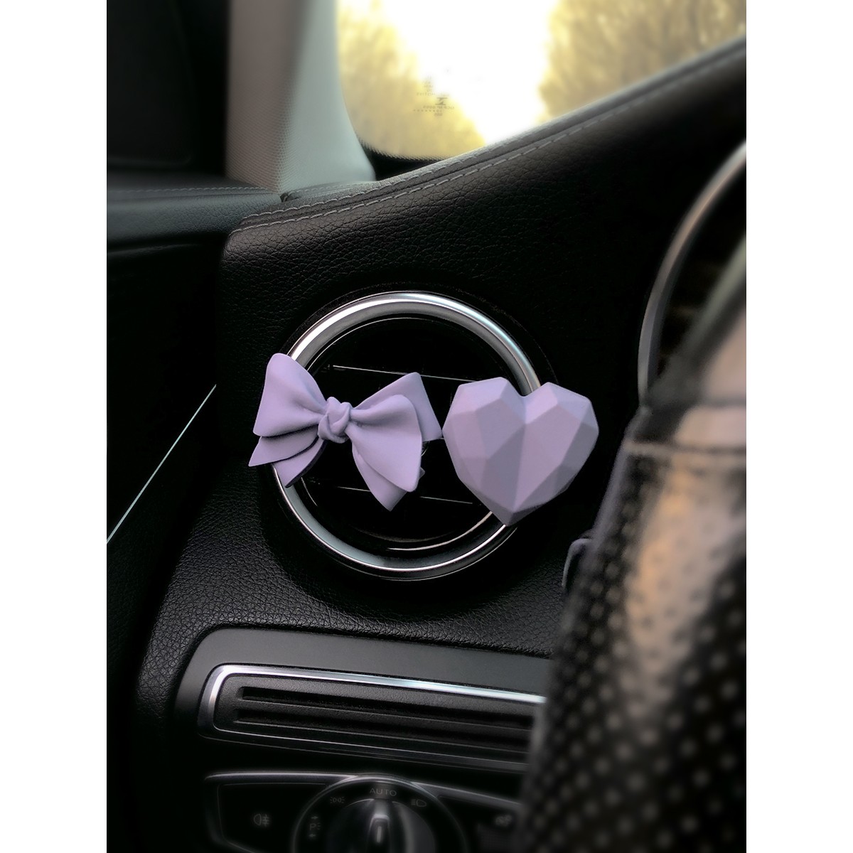 紫色蝴蝶结小熊车载香薰汽车空调出风口香水装 饰扩香石摆件礼物女
