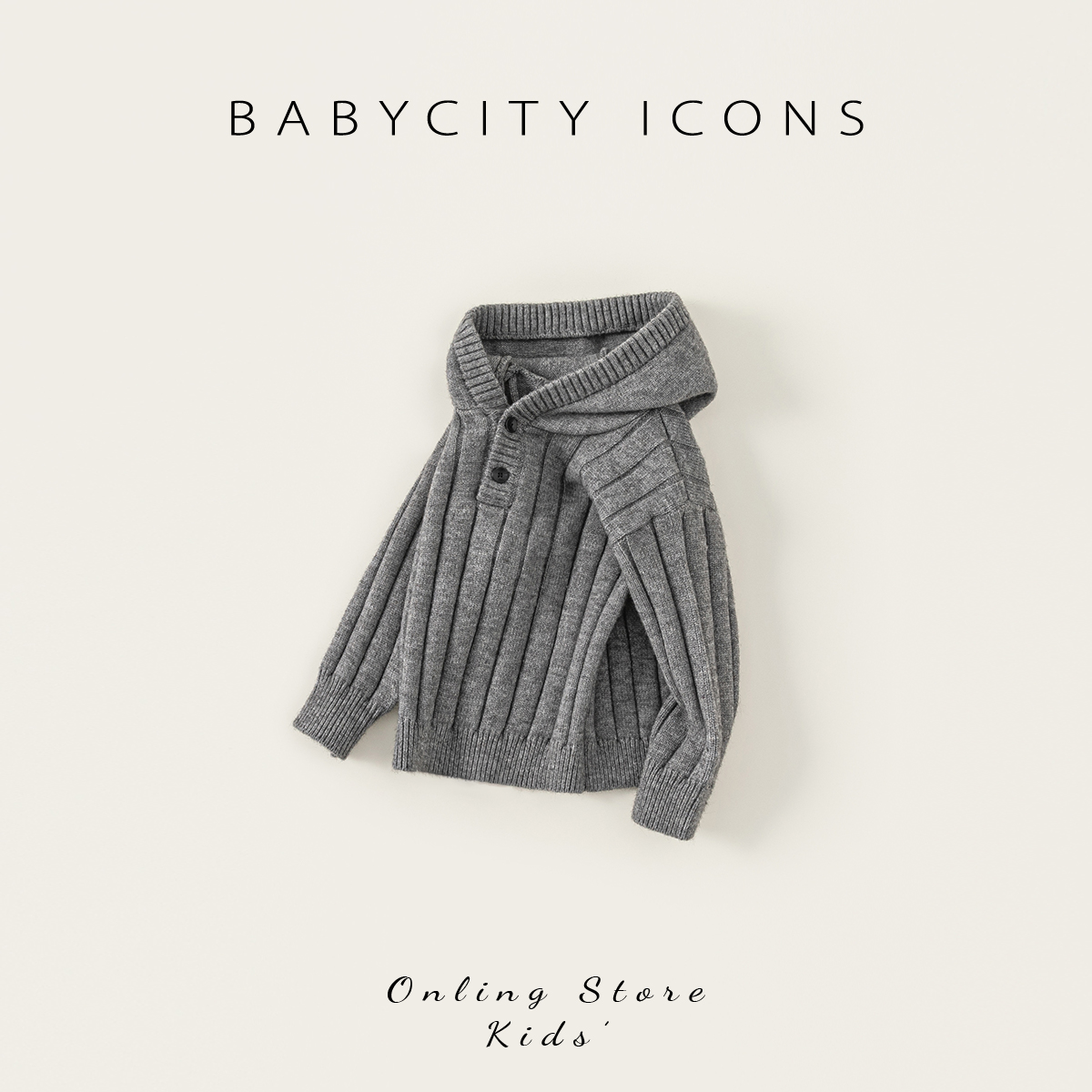 贝贝城女童毛衣春秋2025新款 衣服 洋气儿童连帽上衣小女孩针织秋装