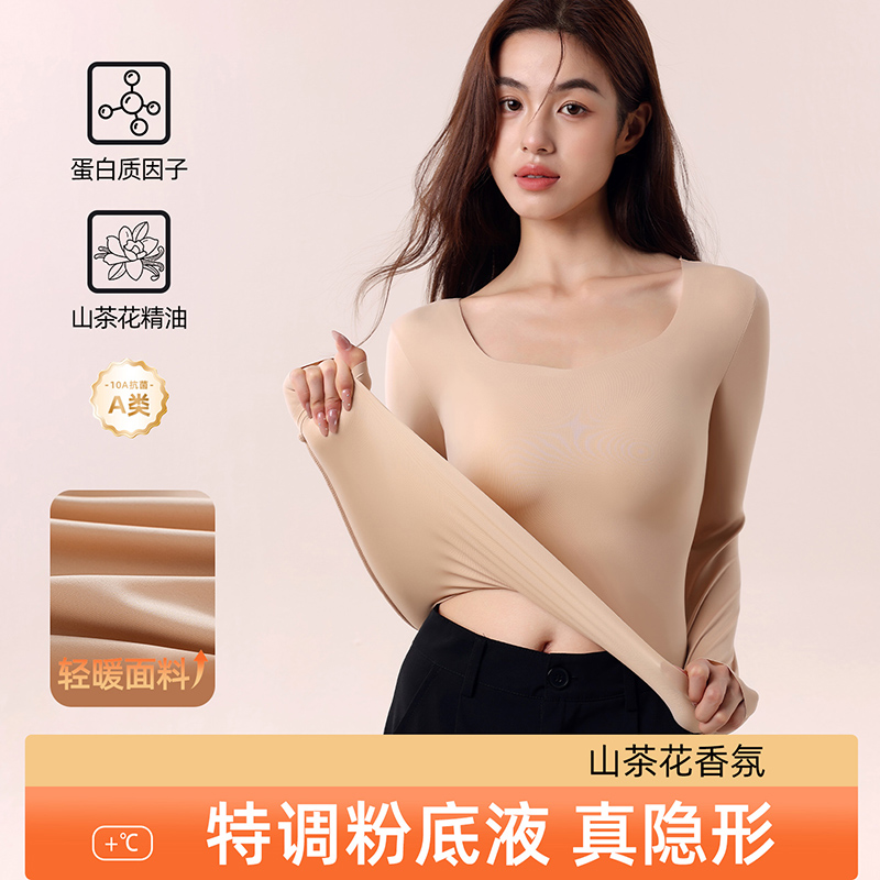 草本初色保暖上衣内搭打底女士秋冬长袖 带胸垫可外穿肌底衣打底衫