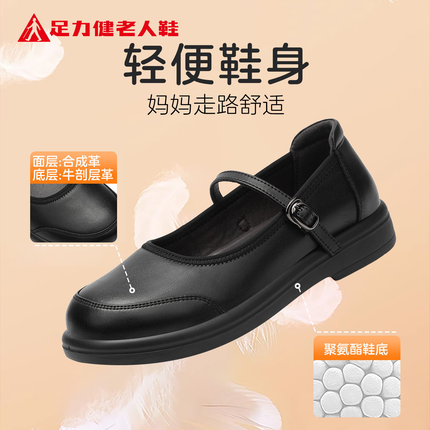 中老年琥珀流光小皮鞋 足力健老人鞋 新款 2025秋季 旗舰店一脚蹬女鞋