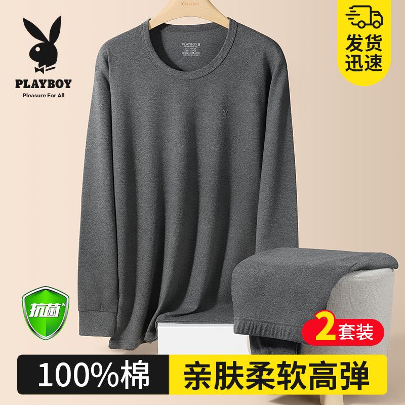 套装 保暖内衣男款 男纯棉2025新款 男士 薄 全棉毛衫 花花公子秋衣秋裤