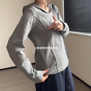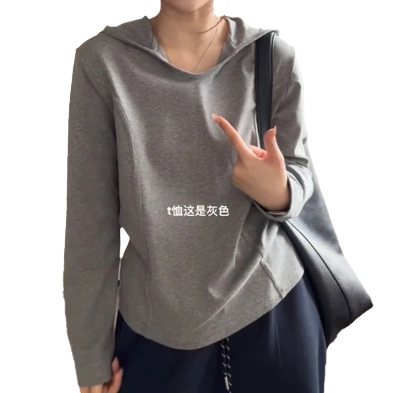 女胖mm薄款 秋季 连帽修身 t恤女2025新款 上衣 显瘦长袖 正肩卫衣大码