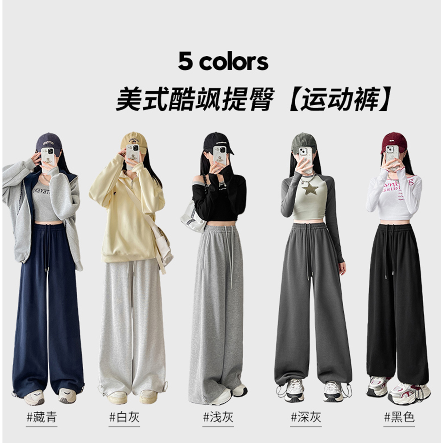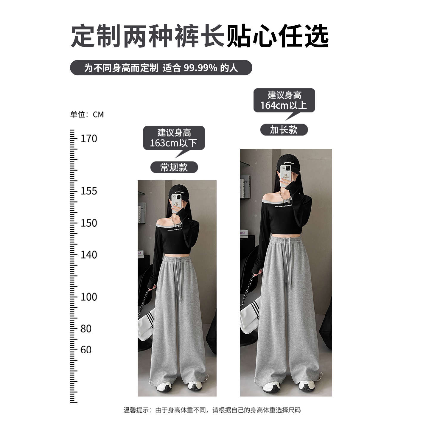 高腰显瘦阔腿抽绳两穿小个子休闲裤 浅灰色工装 新款 女2025秋季 子 裤