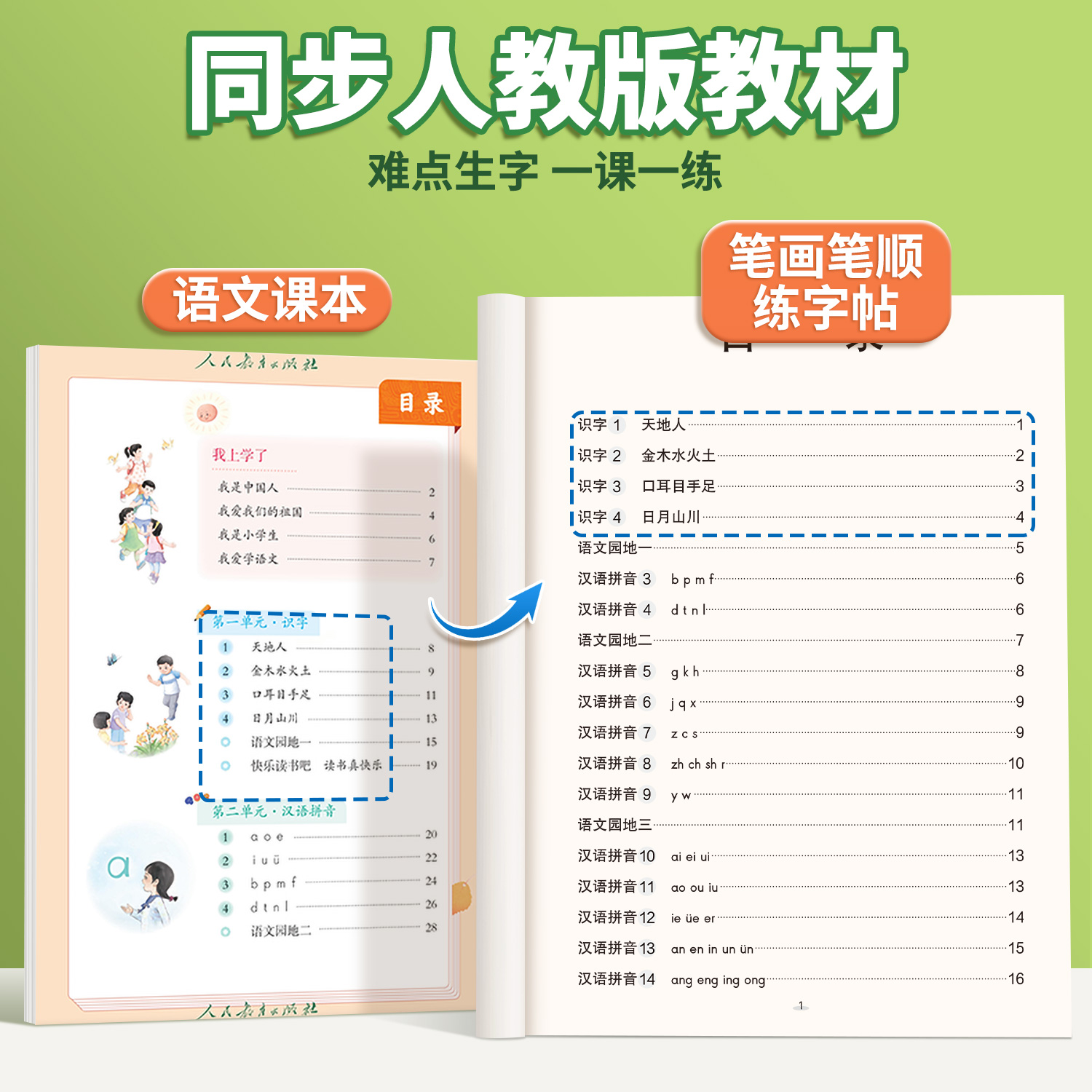2025新版 一年级上册练字字帖语文控笔训练临摹硬笔书法一类二类生字练字帖每日一练笔画笔顺练字练习本 小学生笔画笔顺练字帖人教版