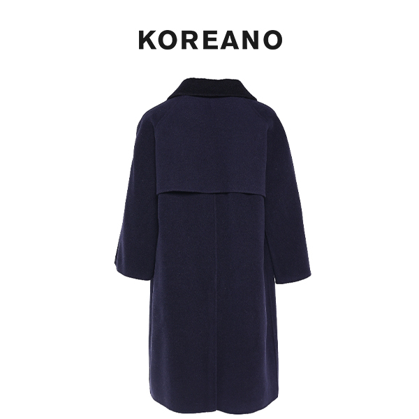 宽松独特皮料带扣大衣 静谧蓝黑色中长款 冬季 FY1847B KOREANO