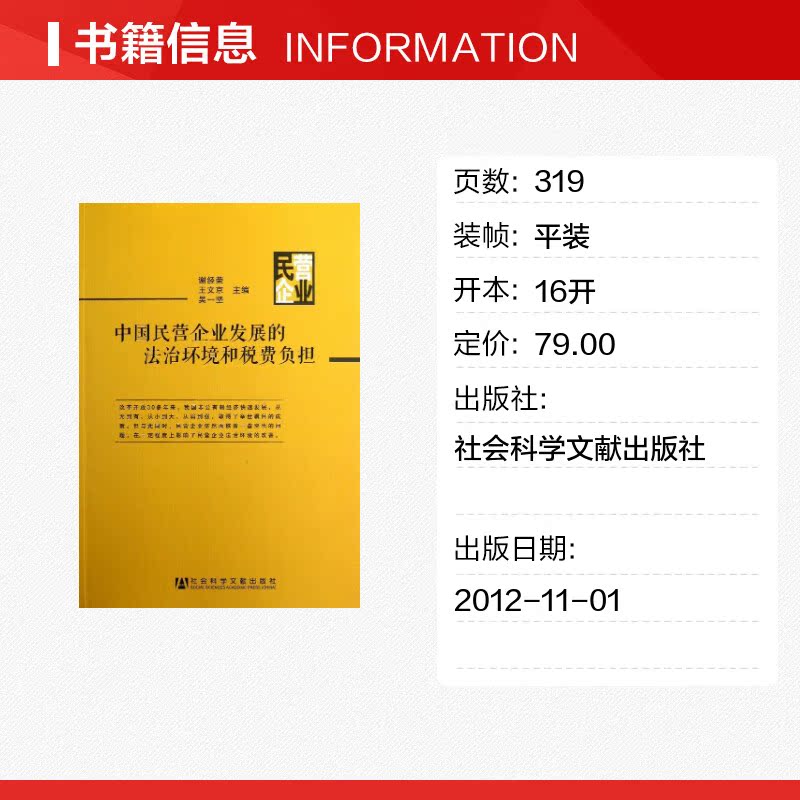 社会科学文献出版 新华书店旗舰店文轩官网 谢经荣 书籍 正版 社 编 吴一坚 王文京 法治环境和税费负担 中国民营企业发展