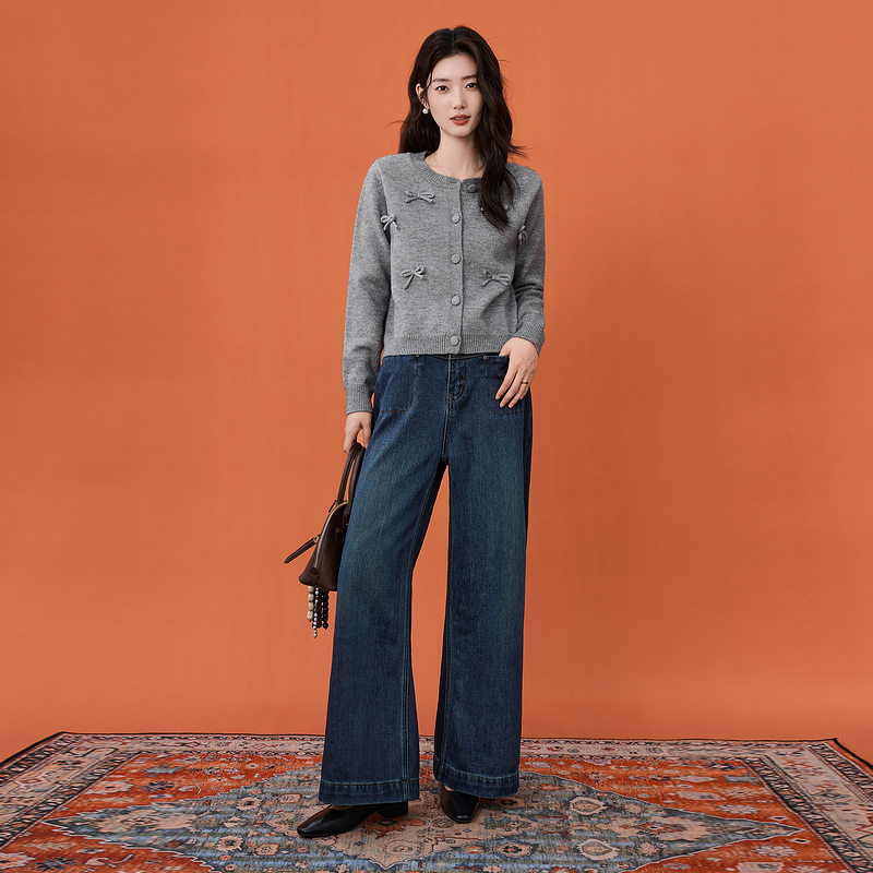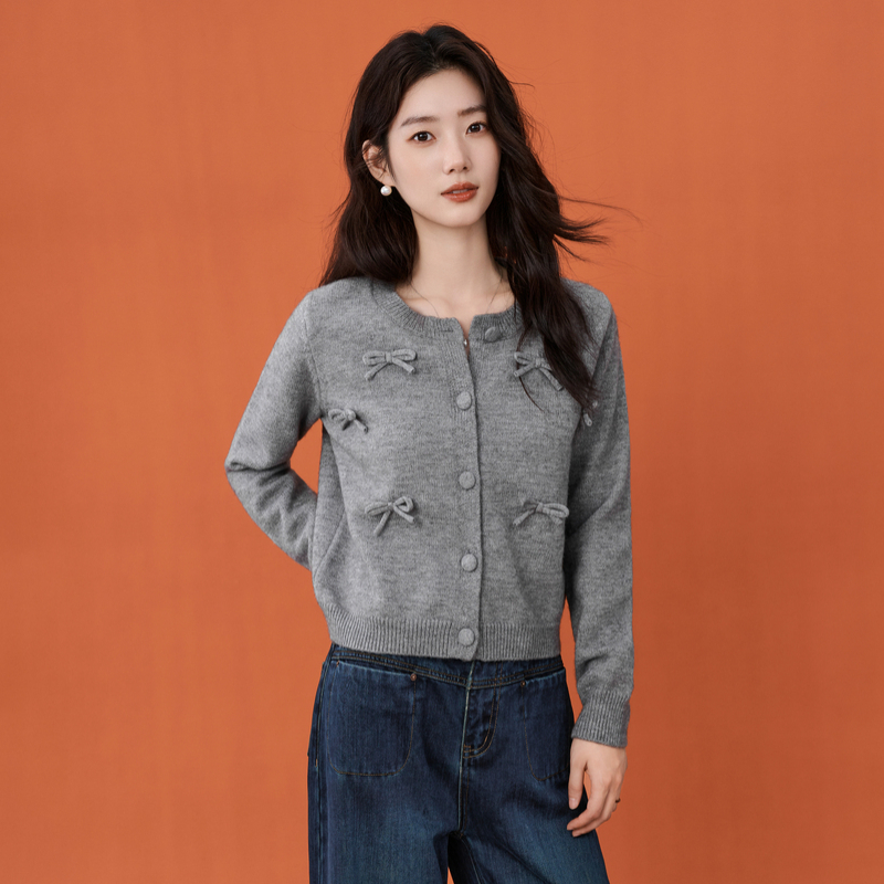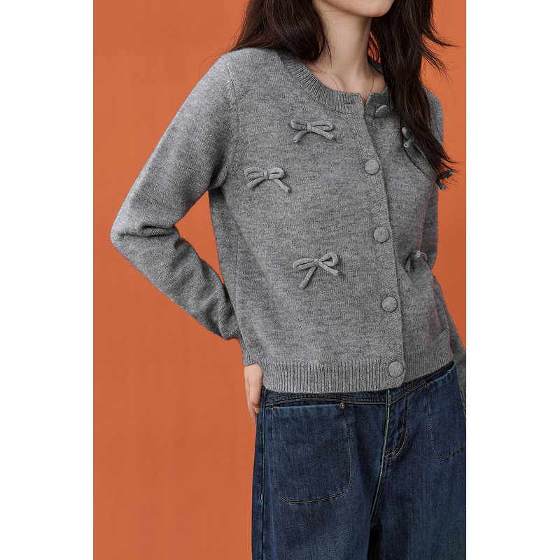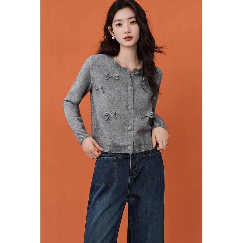新款 女2025秋季 宽松圆领毛衣 针织开衫 飞鸟和新酒插肩袖