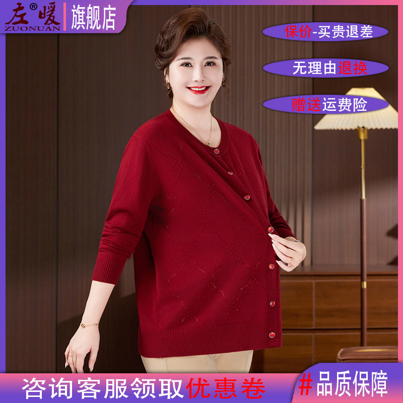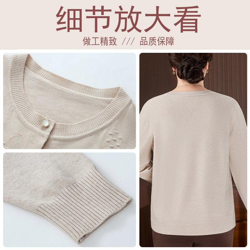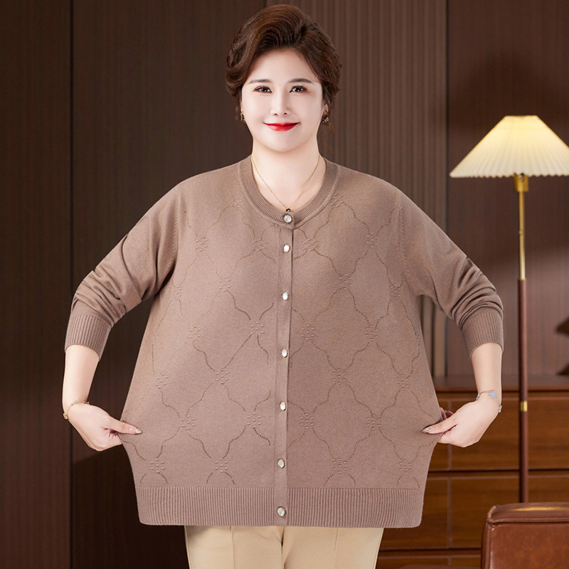 中老年宽松打底衫 毛衣薄外套奶奶圆领加肥针织衫 女 开衫 胖妈妈大码
