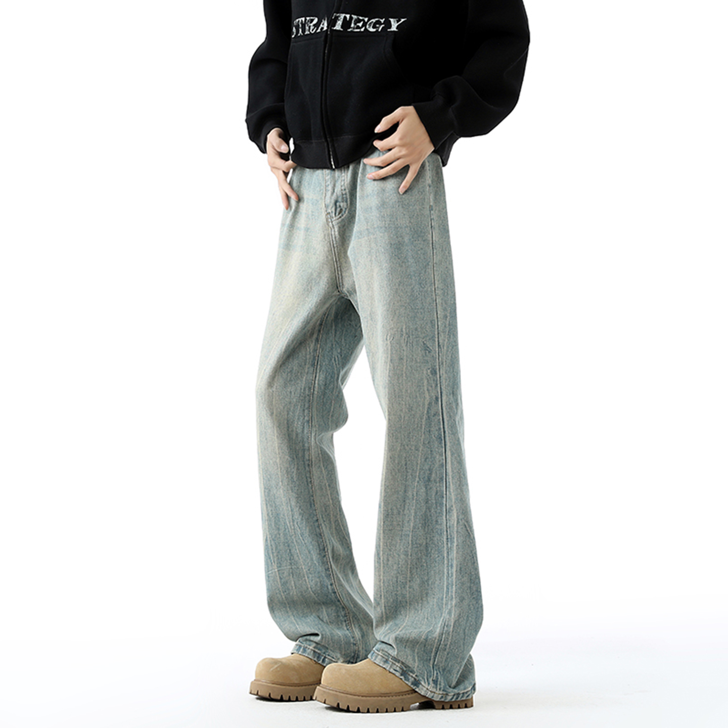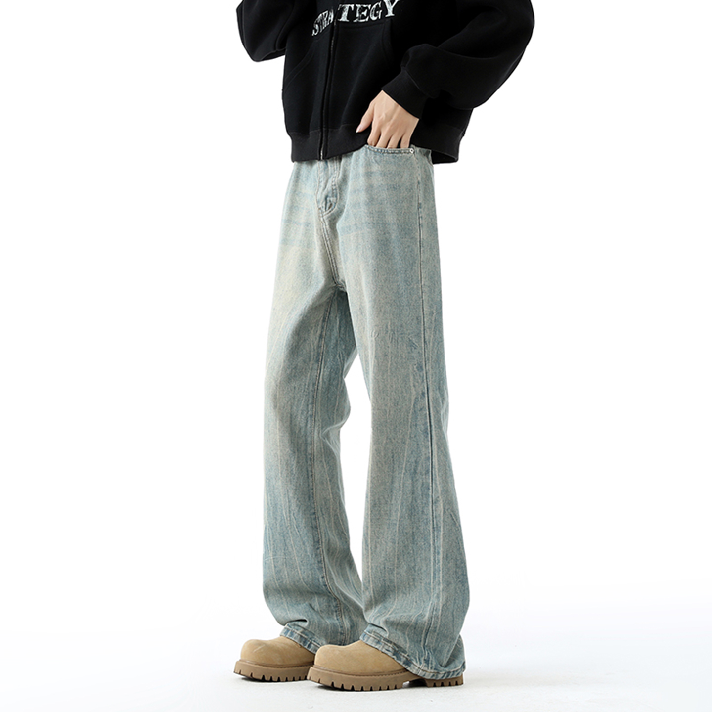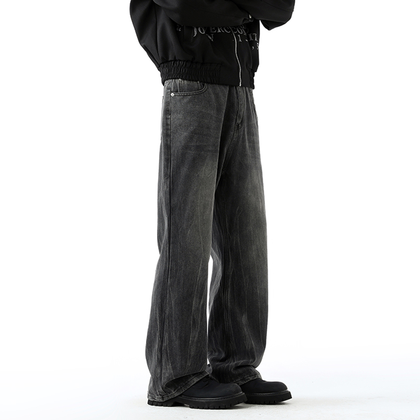 设计感铆钉水洗宽松直筒裤 V37美式 秋季 男款 子 解构立体褶皱牛仔裤
