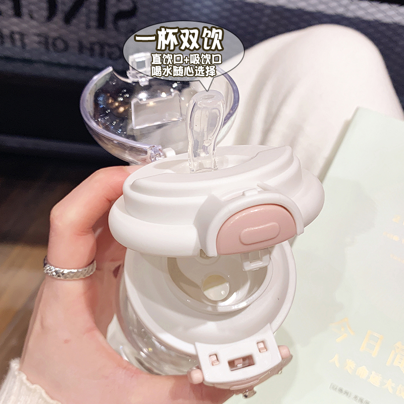 夏天高颜值水杯女2025新款 塑料吸管杯子耐高温防摔学生便携双饮杯