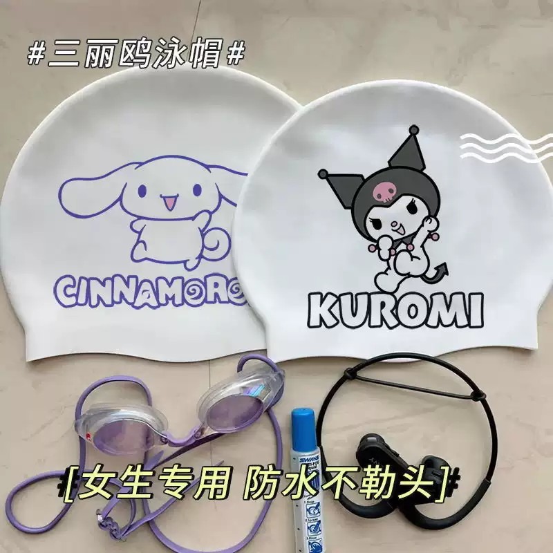 库洛米硅胶三丽鸥KT猫泳帽女款 成人硅胶高弹力防水游泳帽专业泳帽
