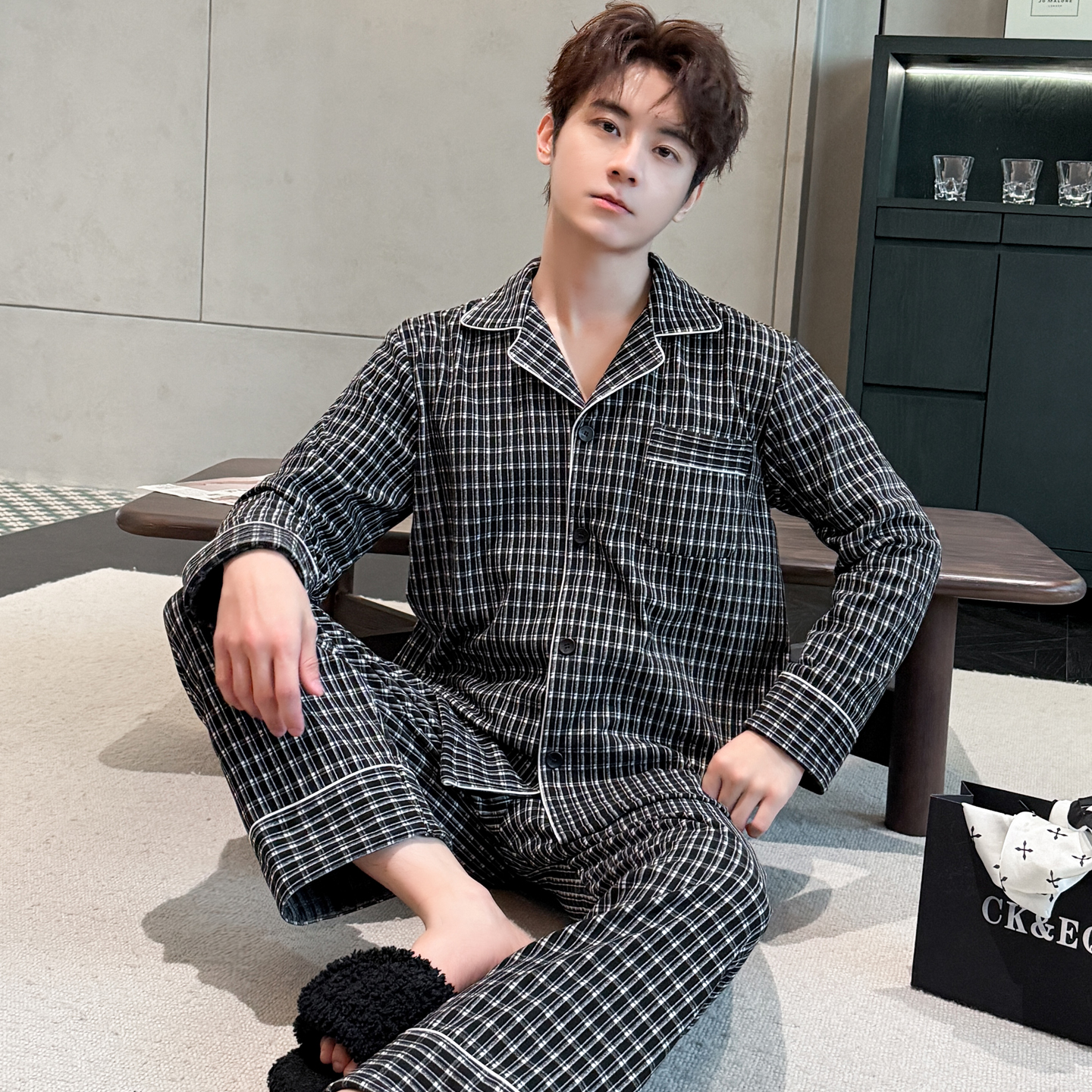 开衫 长袖 2025年新款 大码 猫人纯棉睡衣男士 可外穿家居服套装 春秋款