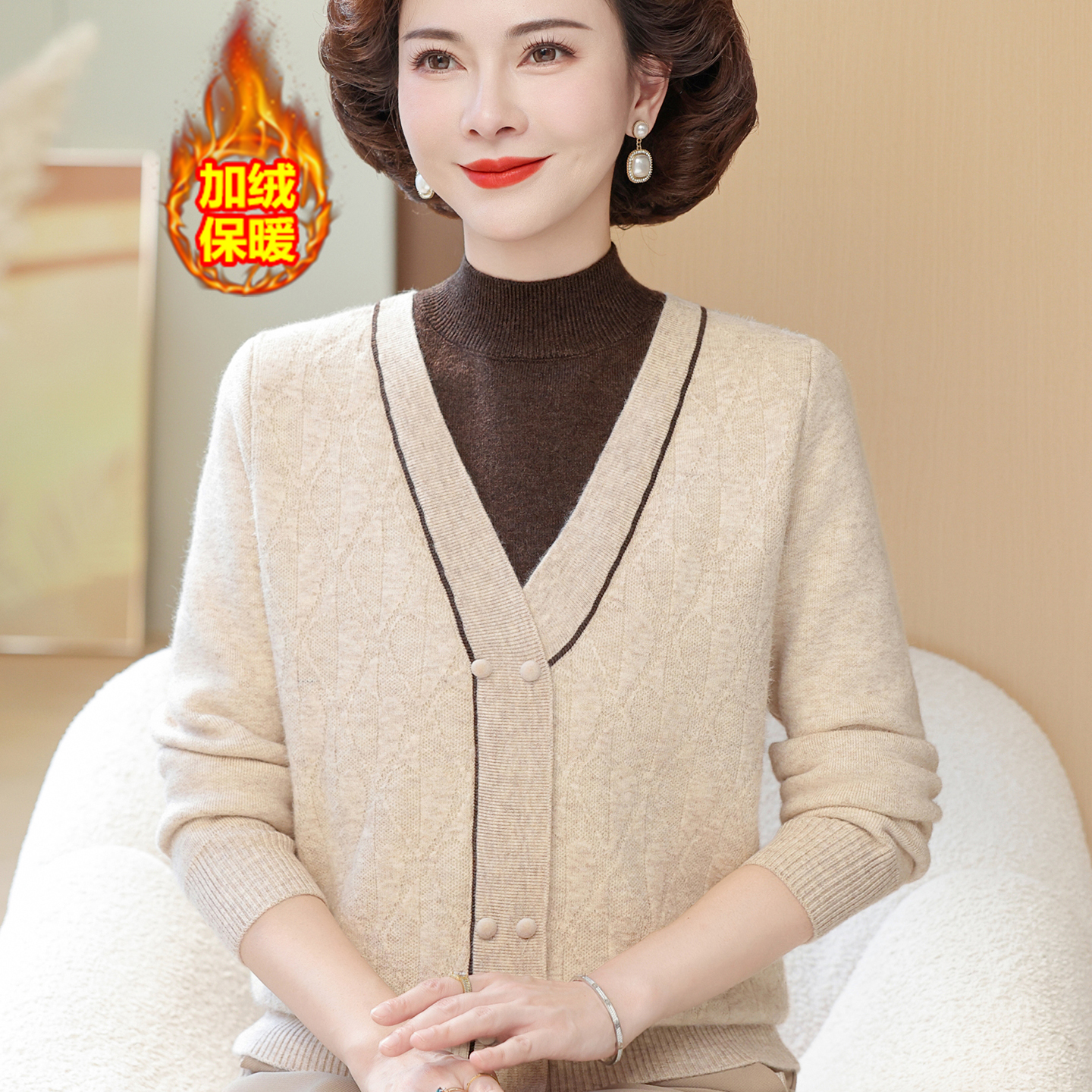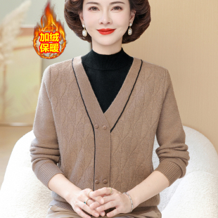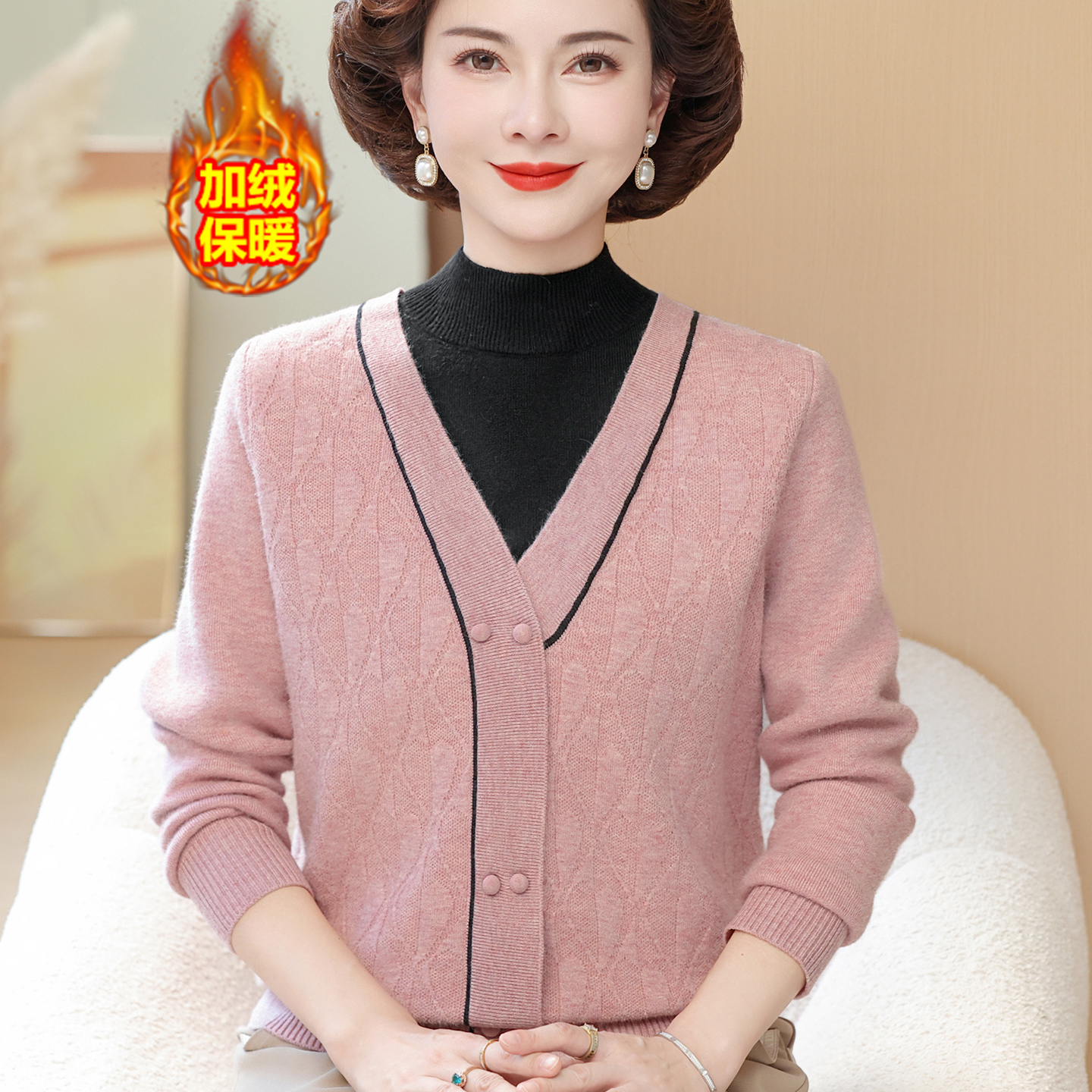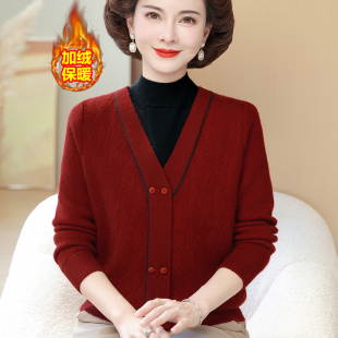 套装 洋气妈妈冬装 加绒加厚红色毛衣中老年女一体绒保暖针织打底衫